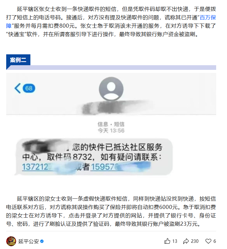 【反诈预警】警惕电诈新变种!有人收到快递取件短信被骗数十万元
