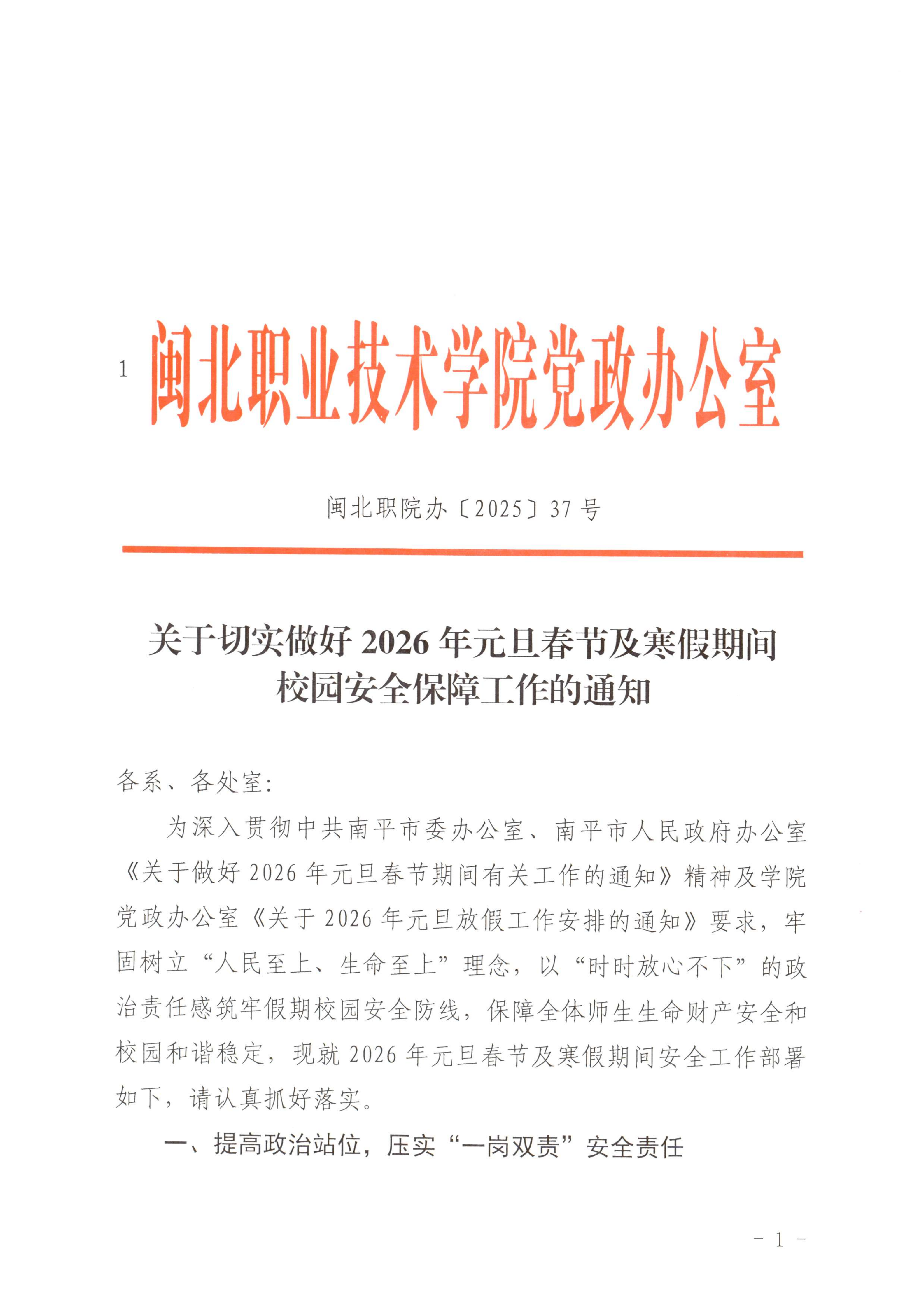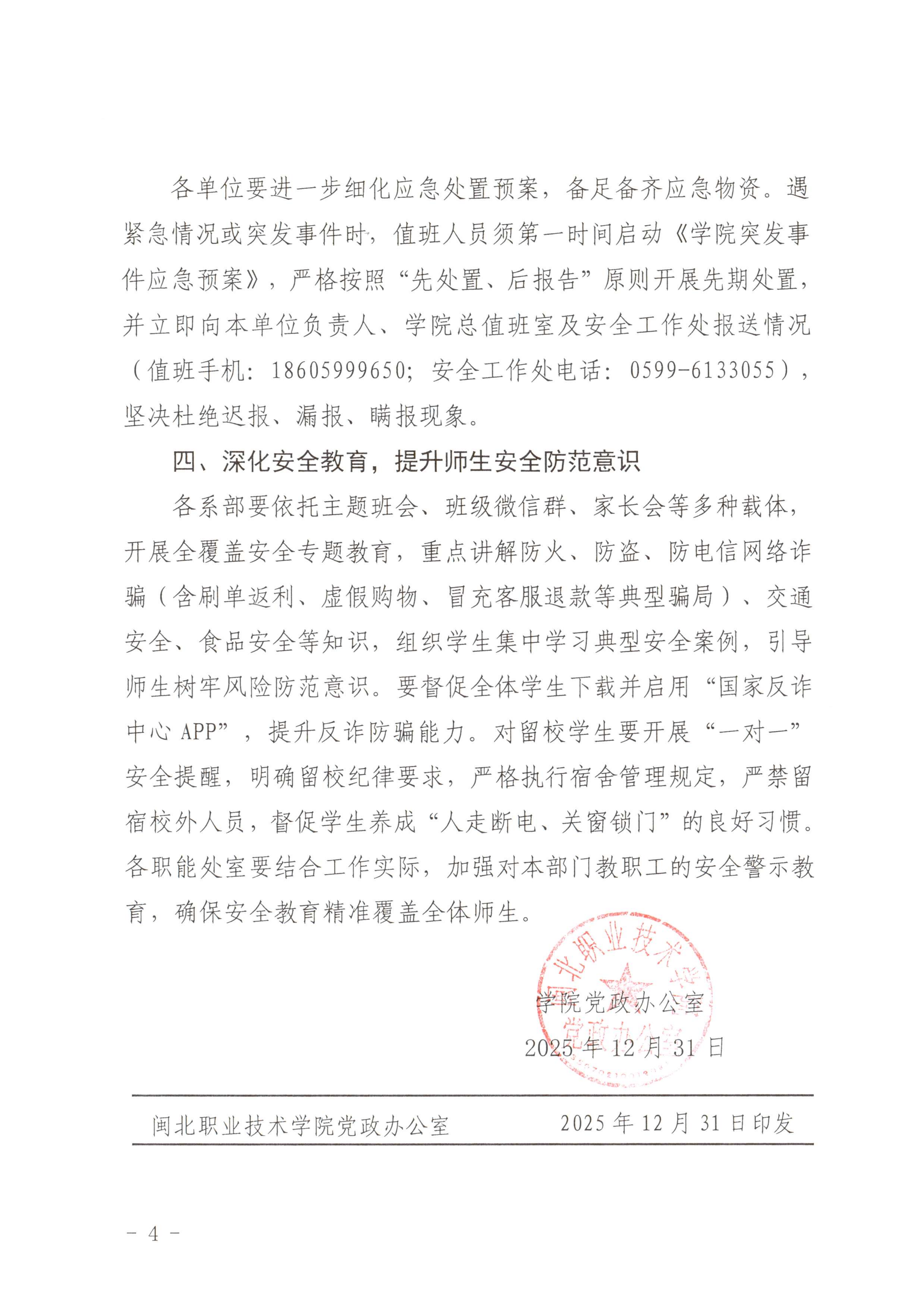 关于切实做好2026年元旦放假期间安全保障工作的通知