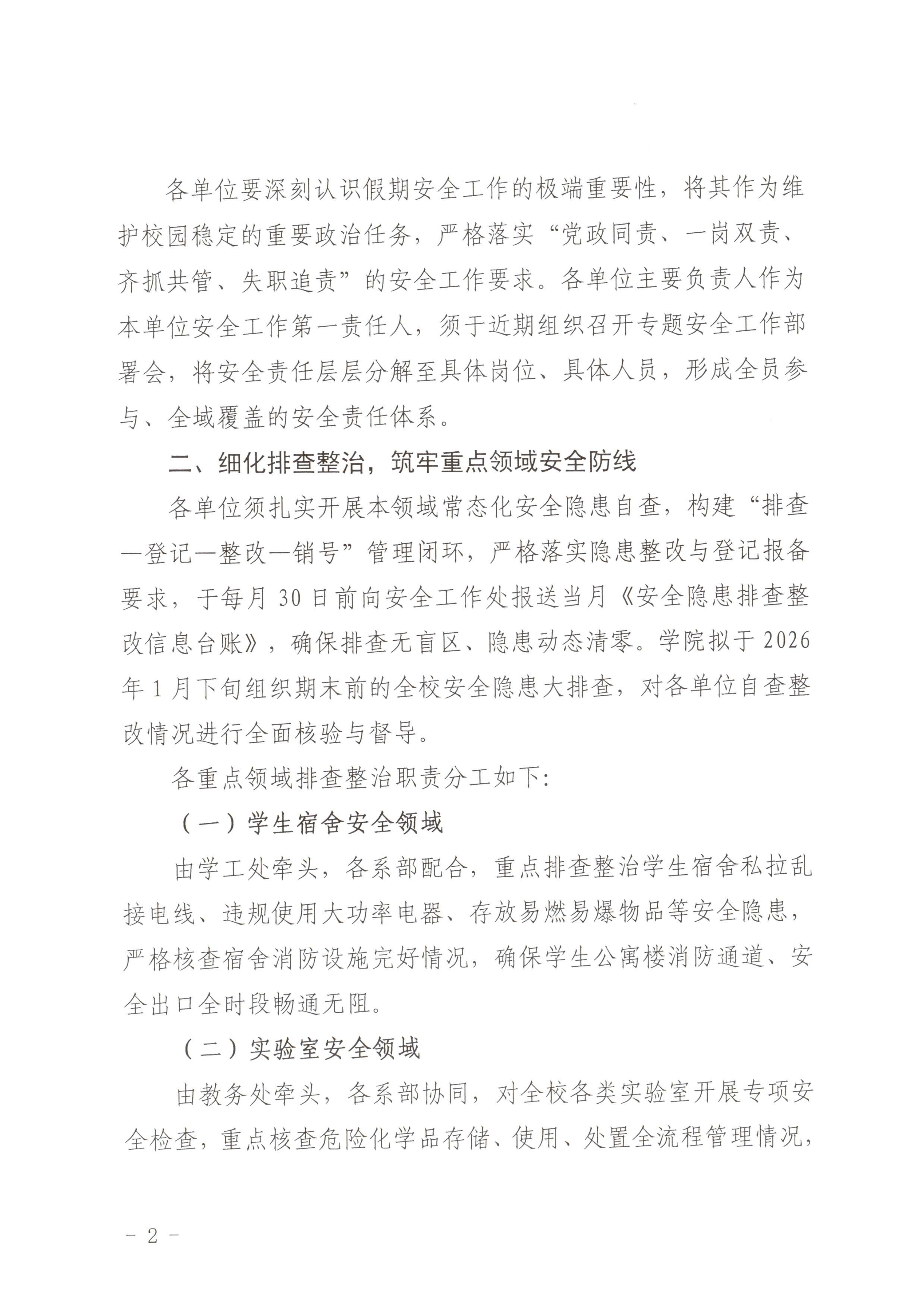 平安校园 | 筑牢假期安全防线 守护平安祥和校园——学院开展2026年寒假春节前校园安全大检查