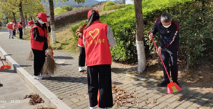 活动中,党团员师生们以清理校园主干道两侧草坪的大面积落叶、白色垃圾为重点,在草坪和绿化区内展开劳动。师生们钻进树杈和灌木中,用草扒、火钳将一处处落叶、垃圾捡拾、分离出来,有序堆放,再集中清运。大家团结一致,有条不紊地忙碌着,义务劳动共持续了2个多小时。师生们付出了辛勤和汗水,也收获了焕然一新的校园环境。