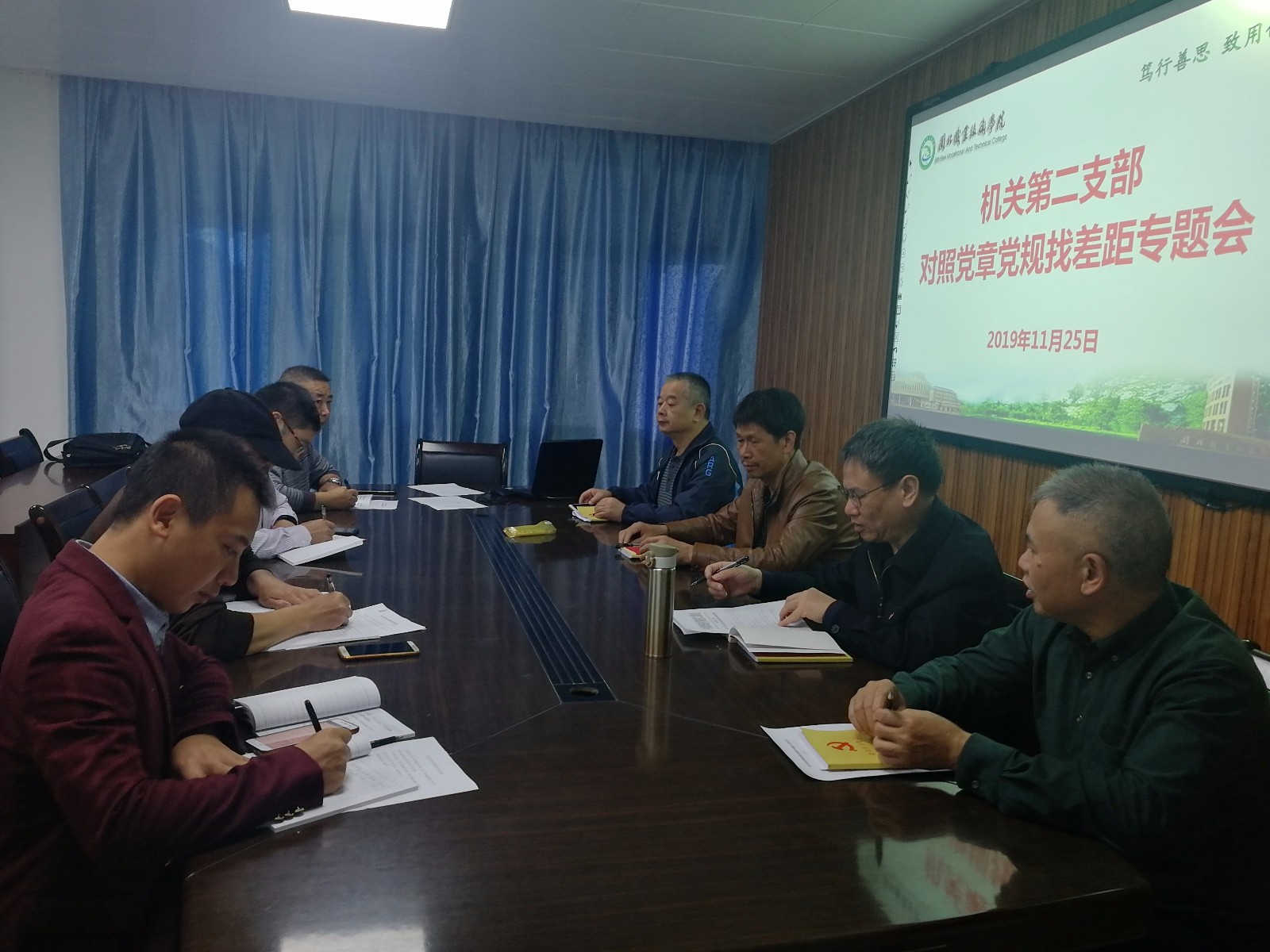 2019年11月25日下午,机关党总支第二党支部召开对照党章党规找差距专题会,机关第二支部书记吴兴旺主持会议,支部全体党员参加了会议。