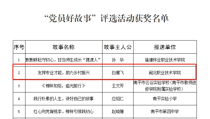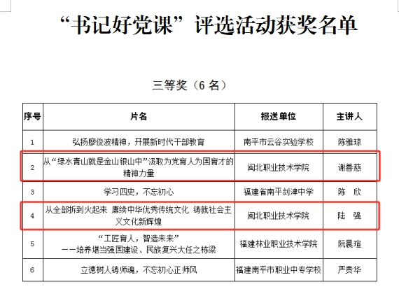 入选南平市委教育工委