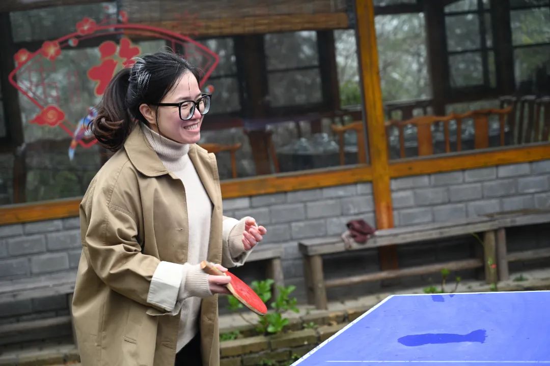 乒乓球台旁,平日严谨的教师们挥拍切磋,轻盈跃动的身影展现讲台外的别样风采。既有竞技的酣畅,也有友谊的升华,呼应了“巾帼不让须眉”的拼搏风貌。