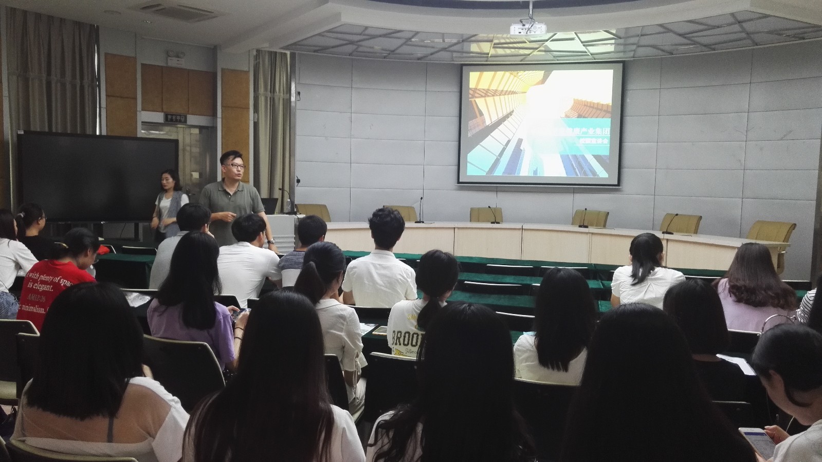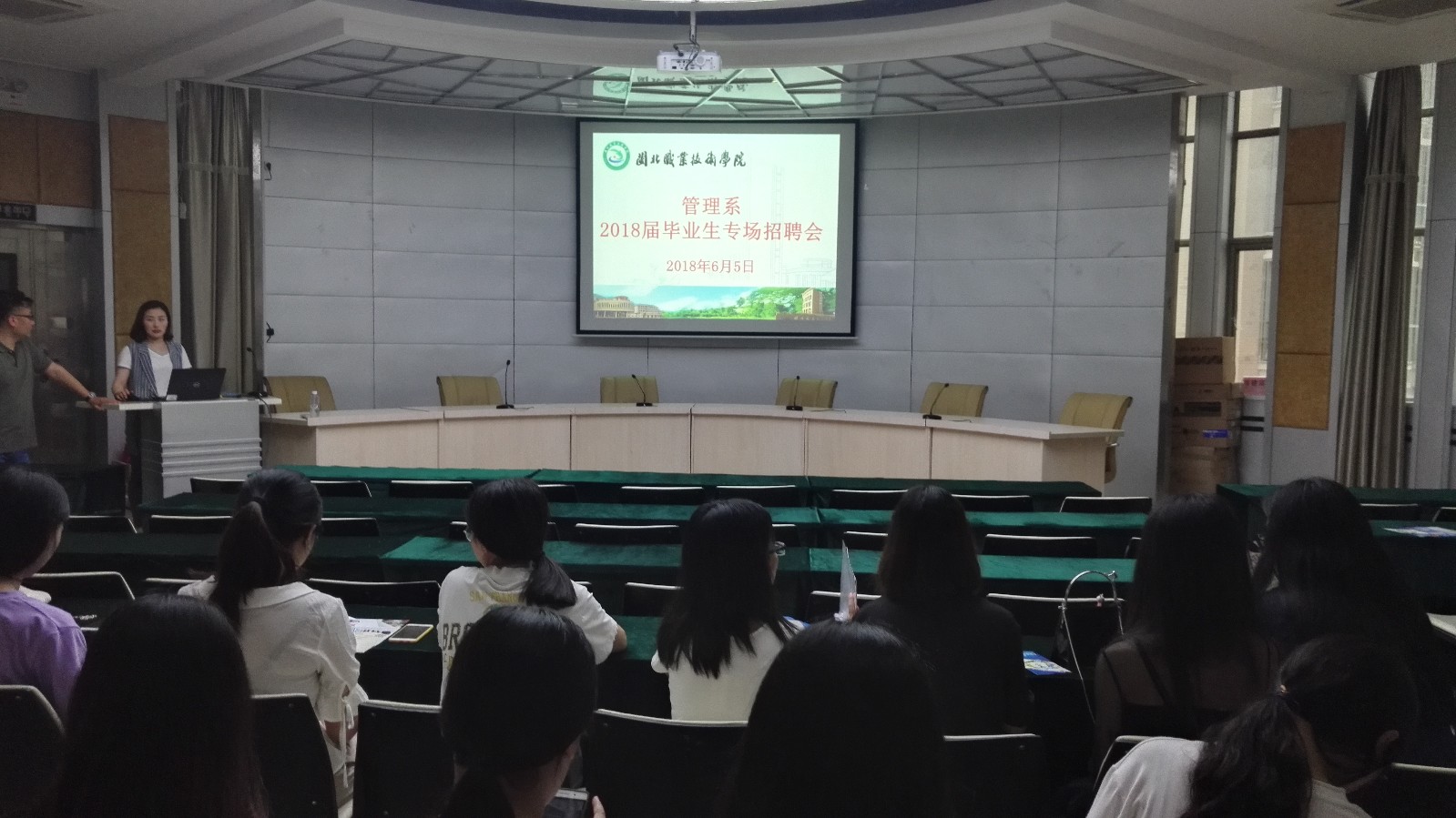2018年6月5日下午,管理系在行政楼一楼报告厅,举行了2018届毕业生专场校园招聘会。南京勤善堂健康产业集团,仟亿达集团、兴业证券股份有限公司南平分公司、福建诺亚创梦电子商务公司等知名企业到场招聘人员,提供了各类就业岗位近40个,管理系2018届会计电算化、财务管理、电子商务、工程造价等专业100多人参加了招聘会。
