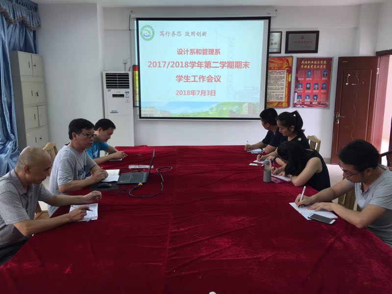 2018年7月3日上午,设计系和管理系在行政楼301会议室召开期末学生工作会议。党总支詹茂光书记、常务副书记敖润富,学生科、团总负责人及全体辅导员参加了会议。会议由敖润富副书记主持。