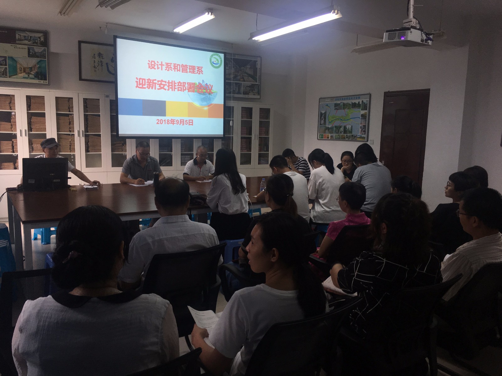 2018年9月5日下午,设计系和管理系召开迎新安排部署专题会议,全系教职工参加了会议,设计系兼管理系主任郑需勇主持了会议。会上,设计系和管理系联合总支常务副书记敖润富对迎新工作地点、任务、时间和人员安排都做了具体部署。郑需勇要求全系教职工充分认识迎新工作重要性,以良好的面貌、饱满的热情和周到的服务全力做好设计系和管理系2018年迎新工作。