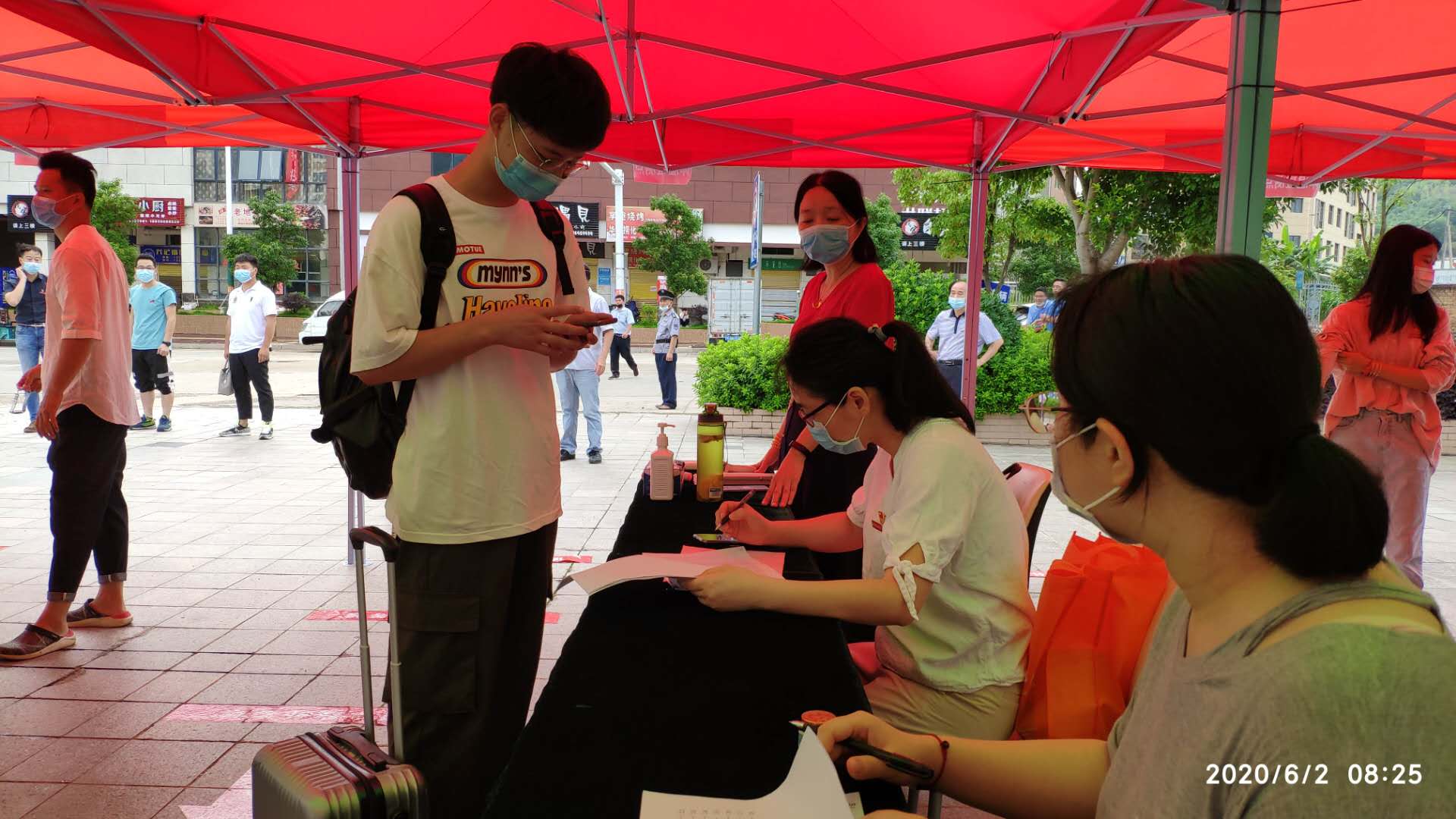 6月2日上午8时前,设计系和管理系詹茂光书记、陈婷主任就来到校门口指导迎接学生返校工作,敖润富常务副书记则带领教师前往高铁延平站迎接返校学子。