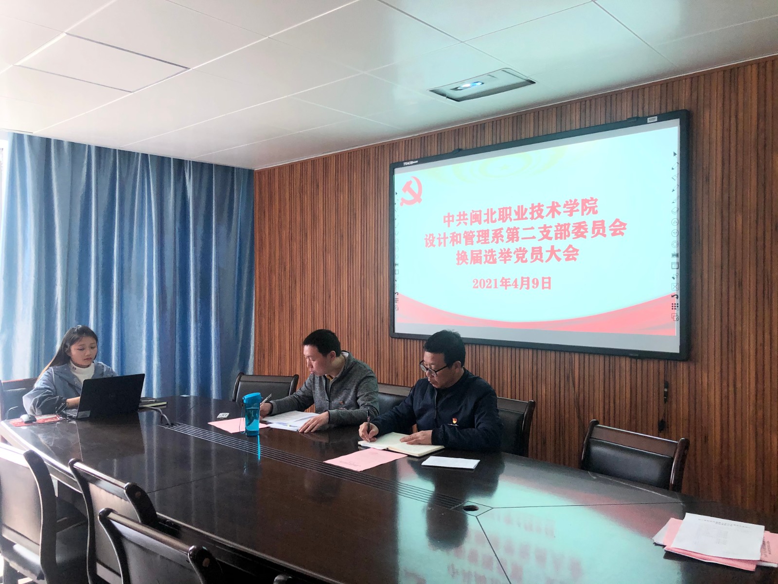 2021年4月9日,设计系和管理系第二党支部换届选举大会在行政楼507会议室隆重召开。第二党支部全体党员参加了本次大会,会议由第二党支部书记吴亮同志主持。