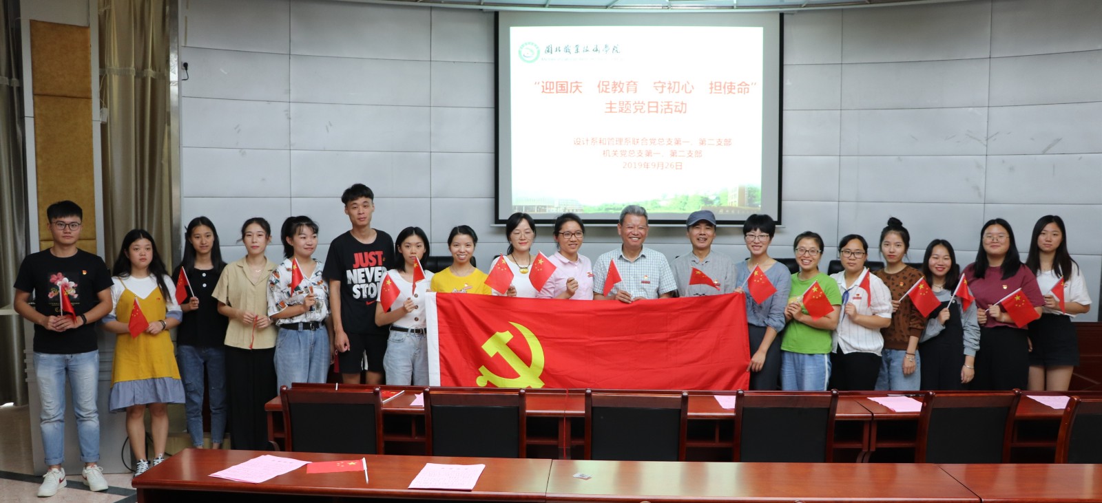 为加强党员理想信念教育,不忘初心,牢记使命,设计系和管理系联合党总支第一、第二支部和机关总支第一、第二支部于9月26日中午,在行政楼一楼报告厅,联合开展“庆国庆、促教育、守初心、担使命”主题党日教育活动。第一、第二支部全体党员参加了活动,院党委高建富书记以普通党员身份出席了教育活动。