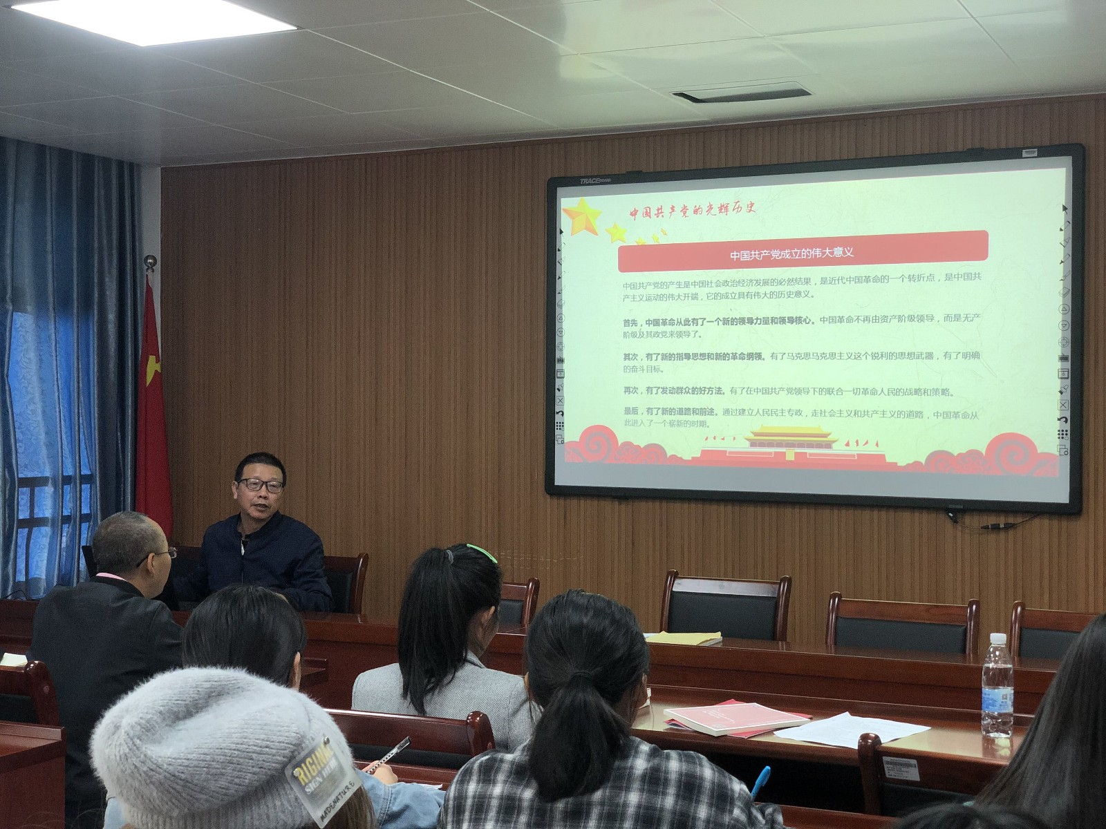 詹茂光书记首先阐述了学习党史的重要意义,他勉励青年党员认真学习党的历史,继承和发扬光大革命传统、党的优良作风。讲座从新民主主义革命时期、社会主义革命和建设时期、改革开放和社会主义现代化建设新时期等几个方面,向党员们展示了党自成立以来99年的丰功伟绩。