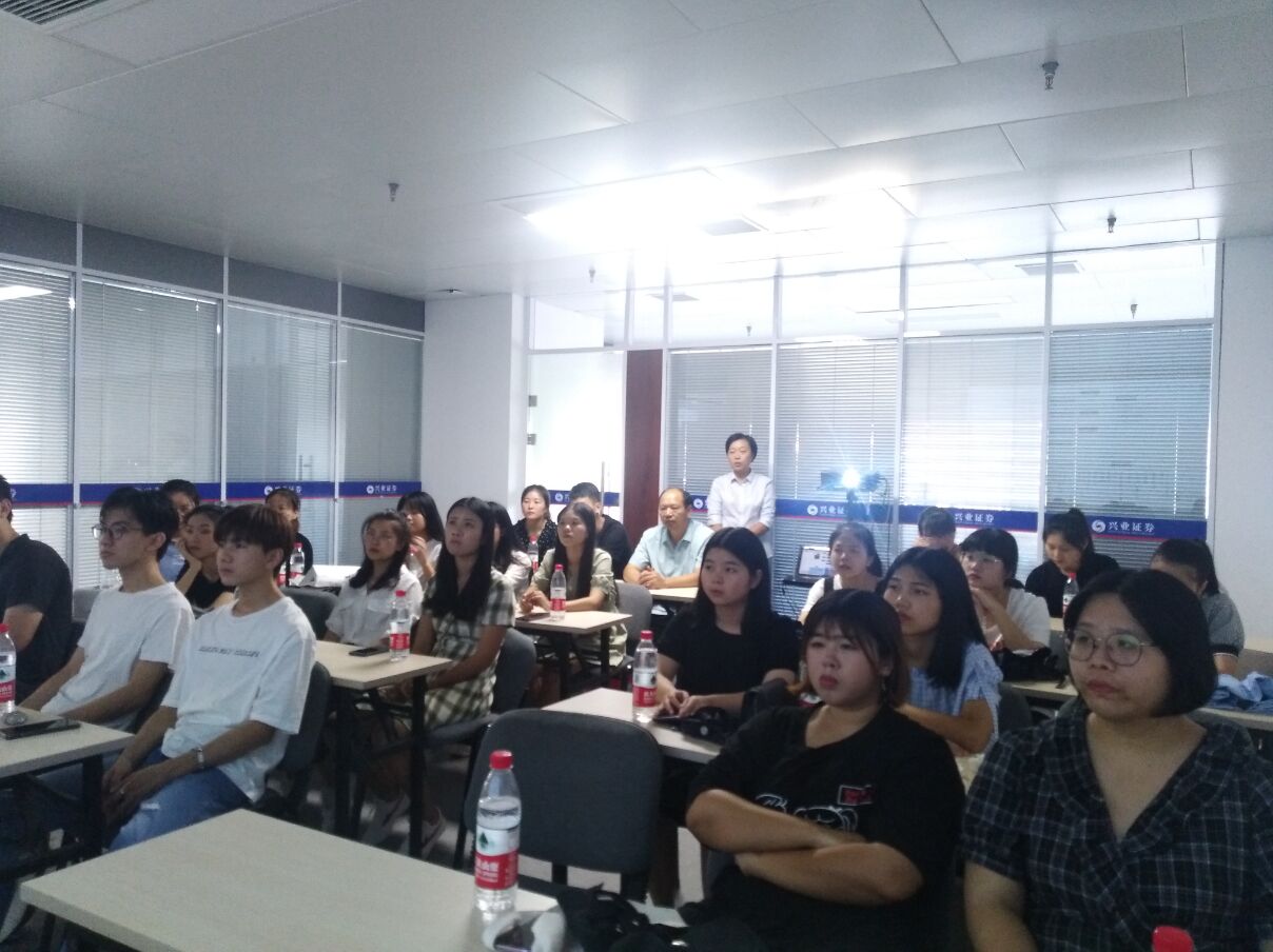 2019年9月30日上午9:00在南平兴业证券公司举办了管理系财务管理专业毕业生招聘宣讲会,南平兴业证券公司人事经理胡总为同学做了简单的介绍,兴业证券南平分公司成立于1993年,下辖南平、建瓯、武夷山、邵武、顺昌、光泽、建阳、浦城、政和9家营业部,是目前闽北地区规模最大、业务品种最齐全、服务品牌最佳的专业证券经营机构。主营行业为资本市场服务,服务领域为许可经营项目:证券经纪,证券投资咨询,与证券交易、证券投资活动有关的财务顾问,证券承销与保荐业务项目的推介与承揽,融资融券,证券投资基金代销,为期货公司提供中间介绍业务,代销金融产品等。