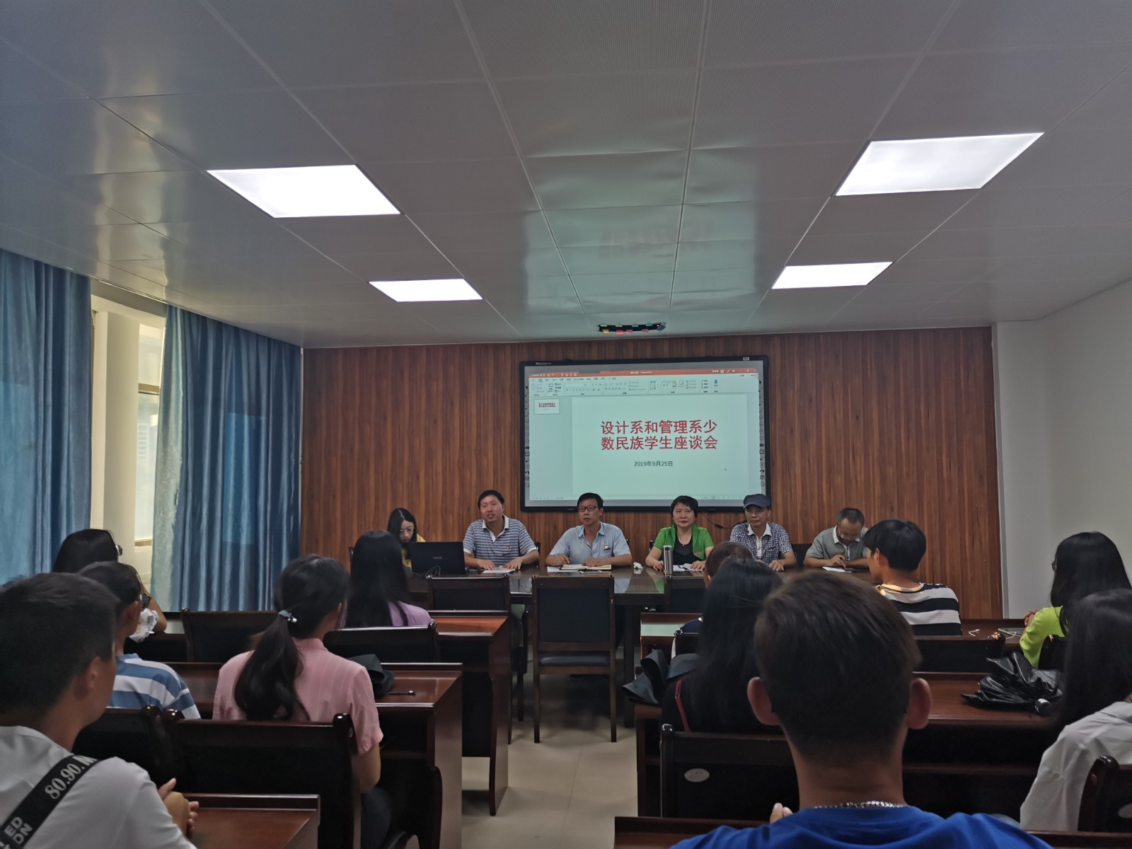 为更进一步了解在校少数民族学生的学习、工作和生活状况,帮助少数民族学生更好地成长成才,9月25日下午,设计系和管理系联合党总支在学院第三会议室组织召开了新学期少数民族学生座谈会。联合党总支詹茂光书记、设计系和管理系陈婷主任、联合党总支敖润富常务副书记,设计系和管理系教科办白雁飞主任、学生辅导员以及来自7个不同民族的23名少数民族学生参加本次座谈会,座谈会由学生科吴亮老师主持。