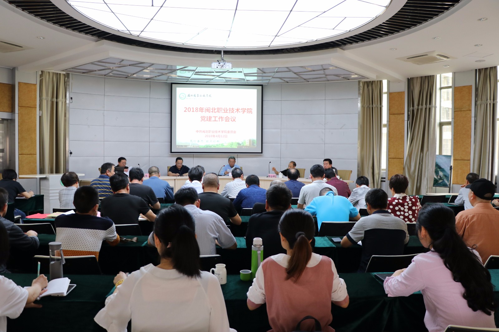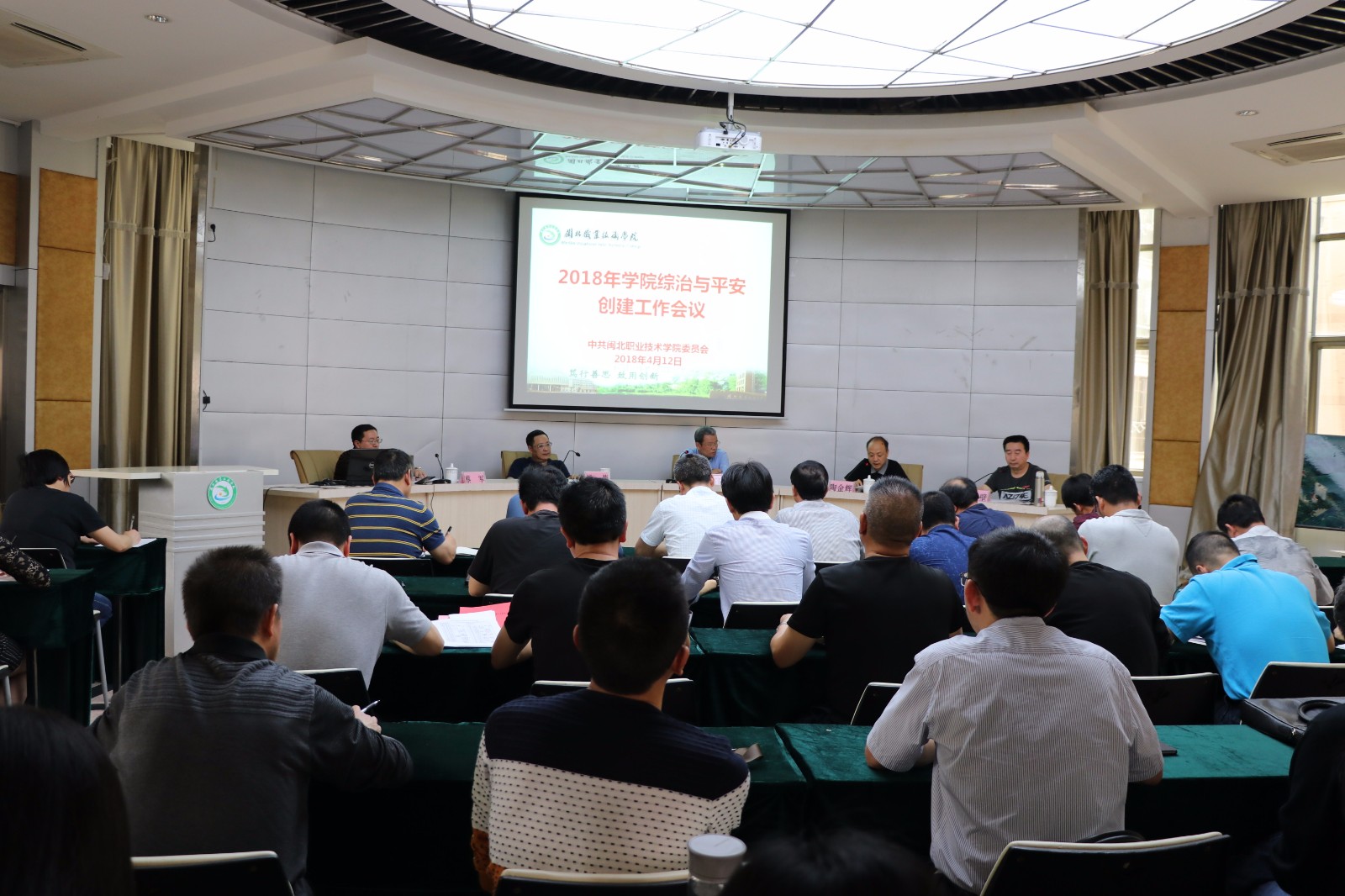 4月12日下午,学院党委在行政楼一楼报告厅召开2018年党建工作暨综治与平安创建工作会议。学院党委委员、各党总支、支部委员及各处室负责人、副科级以上干部共60多人参加了会议。会议由学院党委委员、副院长陈良壁同志主持。