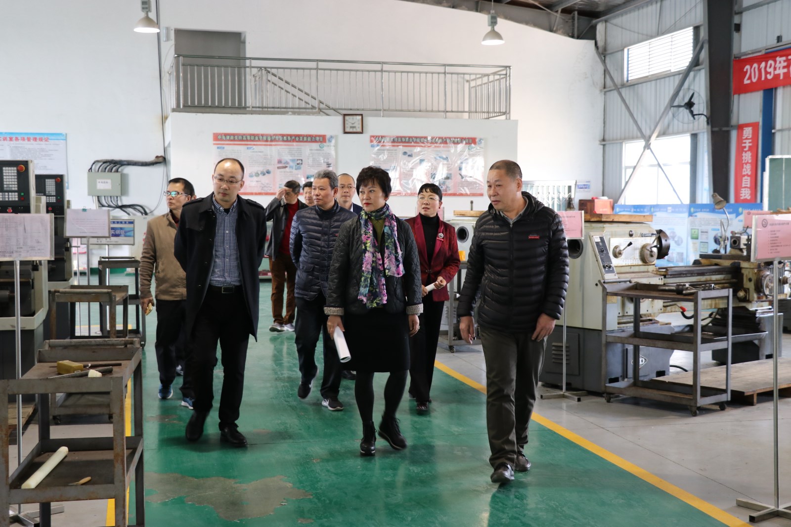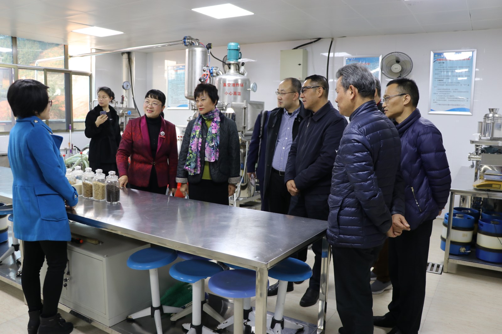 学院高建富书记、黄亚惠院长、郑需勇副院长与来宾们深入交流,介绍学院历史沿革、办学特色,先后参观了食品加工、建筑工程、服装设计、电子机械等实训基地。