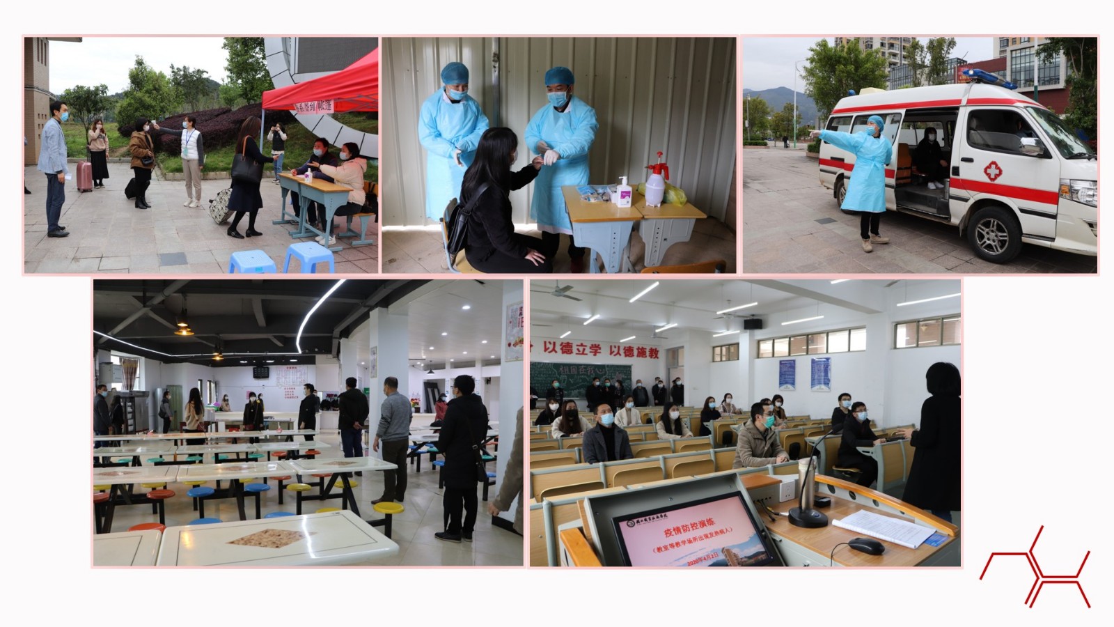 学院先后两次举行疫情防控应急演练,围绕“师生入校筛查突发疫情”、“课堂突发疫情处置”、“宿舍晨午晚检疫情管理”和“食堂就餐管理”等四个场景展开,通过应急演练,使广大教职员工进一步掌握了应急处置流程,形成“人人参与、人人防控”的局面。