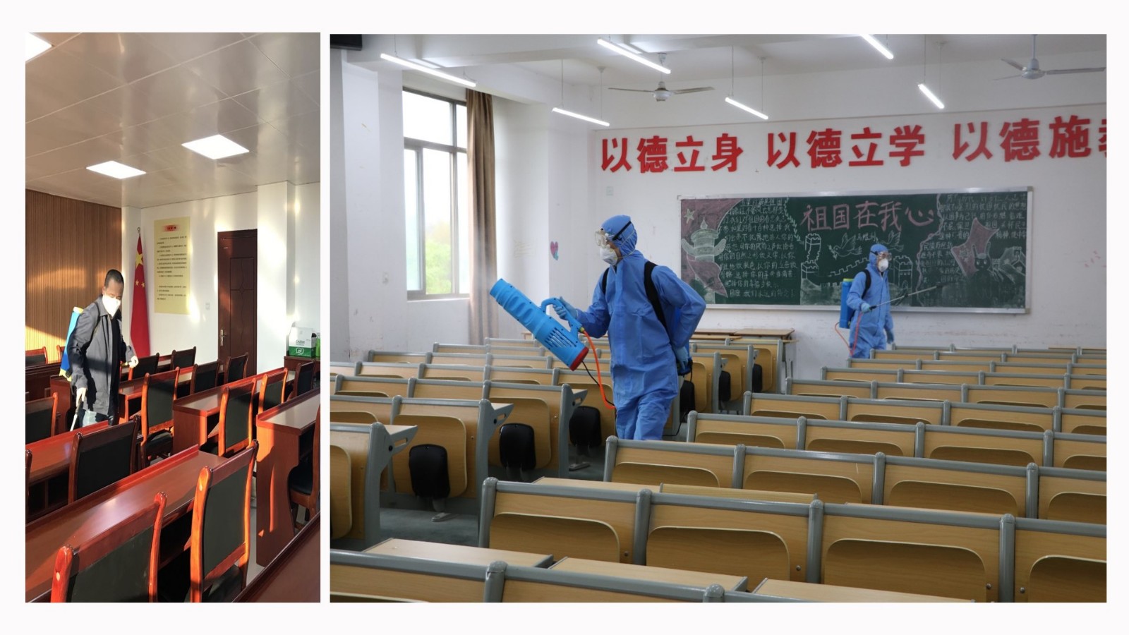 开展环境大整治、大消杀,新增洗手池,配备肥皂、洗手液等用品。对100多间教室和400多间学生宿舍开展卫生大扫除,为学生返校营造舒适的生活环境。张贴了防控知识宣传海报、设置了防控警示标识、人员导流导向标等,让大家一目了然,易识易记、走向精准,尽量避免人流的交叉聚集。