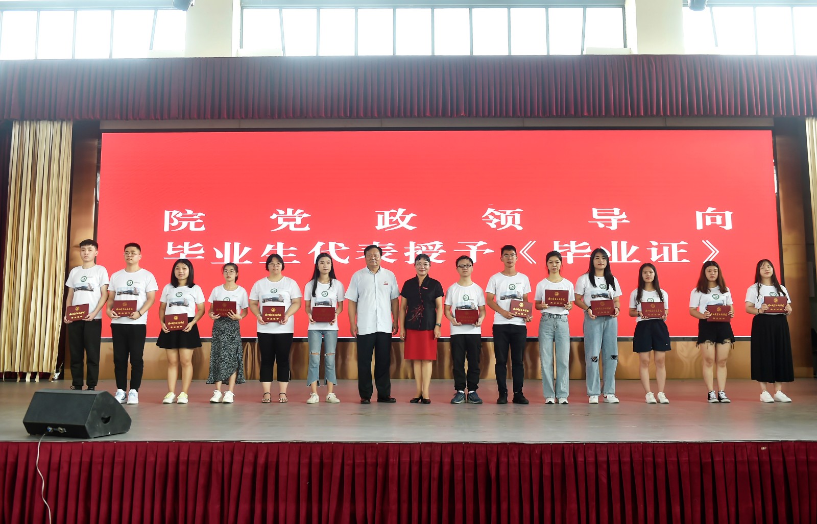 学院党委书记谢友平、院长黄亚惠为毕业生代表授予毕业证书。