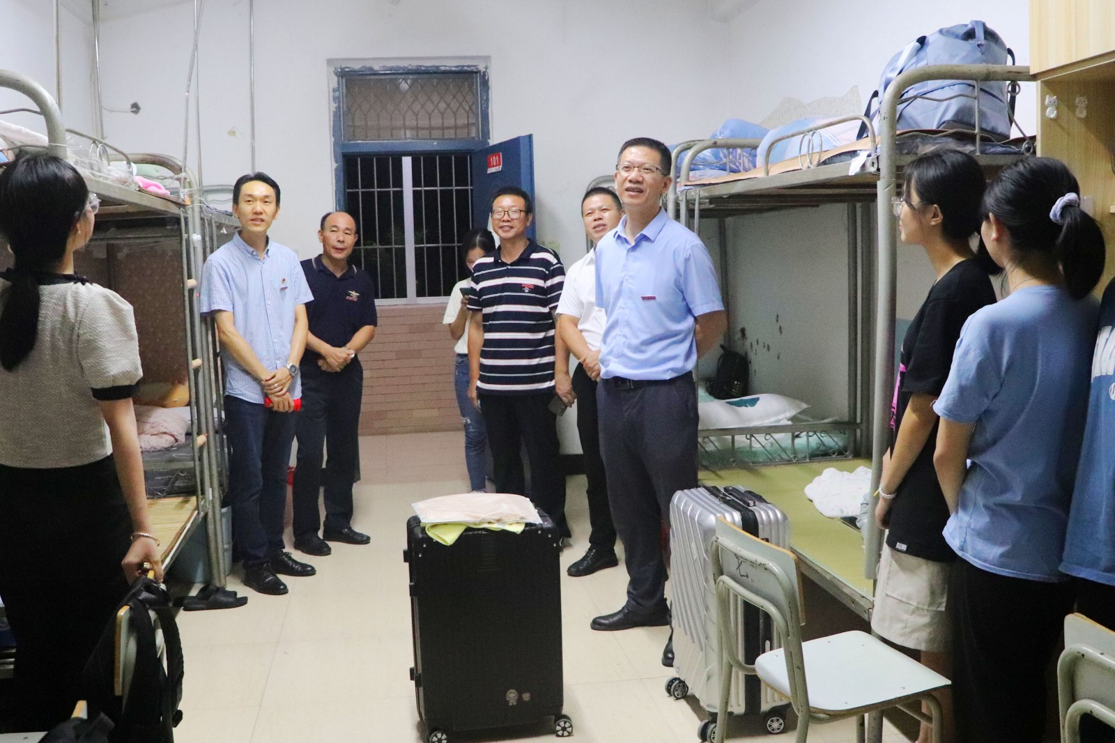 9月9日新生报到当天,Beat365党委副书记、院长叶世森,党委副书记陶金辉率办公室、学生工作处负责人和各系党总支书记、学生科科长、部分辅导员一同深入学生宿舍走访看望2021级新生,向新同学们表示热烈的欢迎。