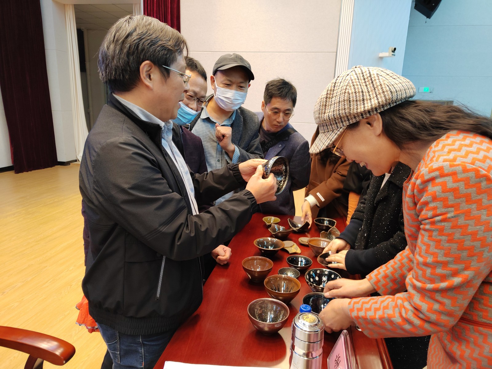 讲座结束后,大家意犹未尽,近距离观赏各类建盏,询问交流,气氛热烈。
