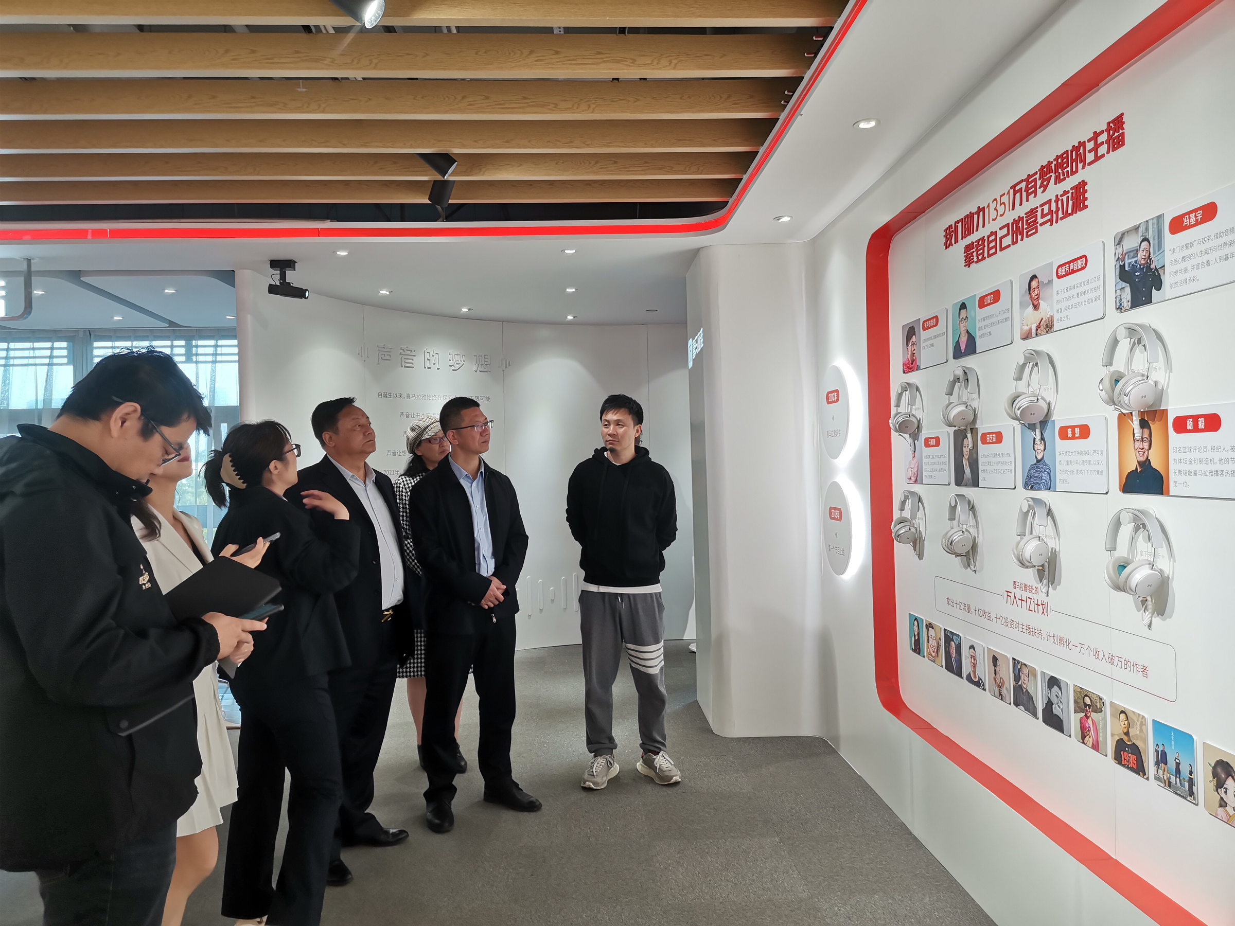 调研组一行还参观了喜马拉雅的公司展厅和声音博物馆,初步了解了公司的企业文化、发展历程、业务架构及旗下产品,聆听了公司的产品亮点、盈利模式、审核机制、社会责任和未来发展方向等方面的详细介绍。