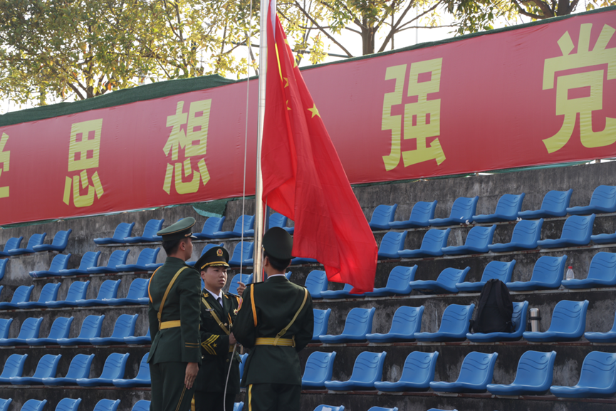 雄壮的国歌响起,全体师生庄严肃立,向国旗行注目礼。
