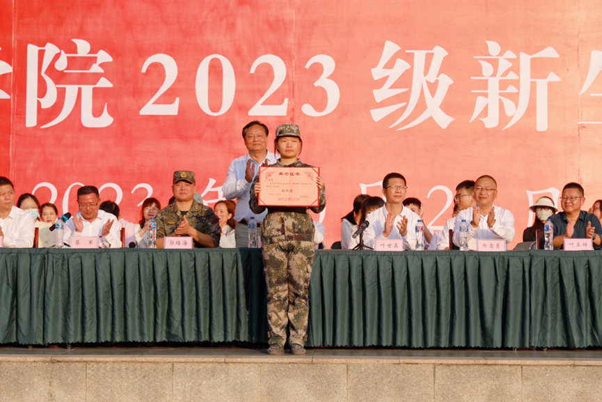 他指出,军训是一个成长的阶梯,是一段难忘的人生,是一堂崭新的思政课,是一个火热的熔炉。希望同学们以本次军训为起点,把军人的优良作风和优秀品质,带到今后的学习和生活中去,争做品学兼优的新时代大学生。继续发扬纪律严明的优良作风、吃苦耐劳的宝贵精神、团结协作的团队精神、艰苦朴素的优秀品质,秉承“躬耕力行、自强不息、开拓创新”的闽北职院精神和“笃行善思,致用创新”的校训,在专业学习中不断打磨专业技能,在集体生活中妥善处理人际关系,在服务奉献中提升人格魅力,在团结协作中实现共同成长。