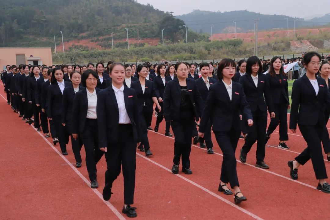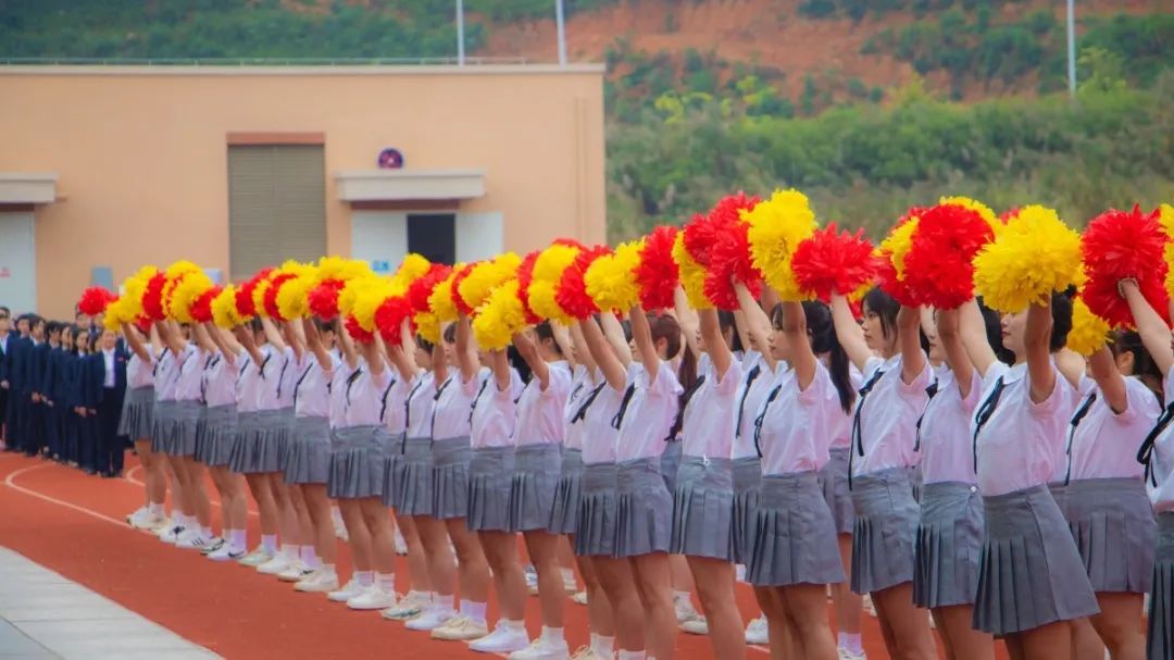 五星红旗迎风飞扬,全体师生高唱国歌,以饱满的热情迎接校运会的开幕。