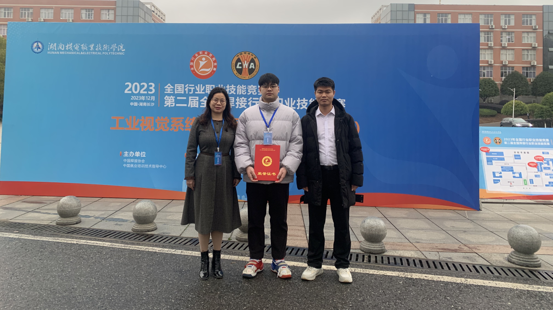 12月11日,2023年第二届全国焊接行业职业技能竞赛工业视觉系统运维员(焊接应用方向)赛项在湖南机电职业技术学院落下帷幕。Beat365中文官方网站机电一体化技术专业21级学生刘绪龙在杨成菊、周慎两位老师的指导下,凭借出色的发挥,从来自全国各省份52支队伍中脱颖而出,荣获二等奖。
