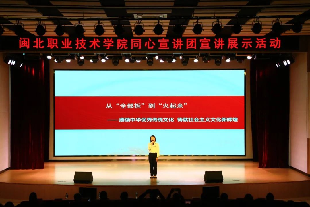 马克思主义学院郭文艳老师以三坊七巷“由‘拆’到‘保’”为主轴,讲述了中华优秀传统文化由“保下来”到“活起来”再到“火起来”的创造性转化和创新性发展,引导同学们坚定文化自信,共同铸就社会主义文化新辉煌。