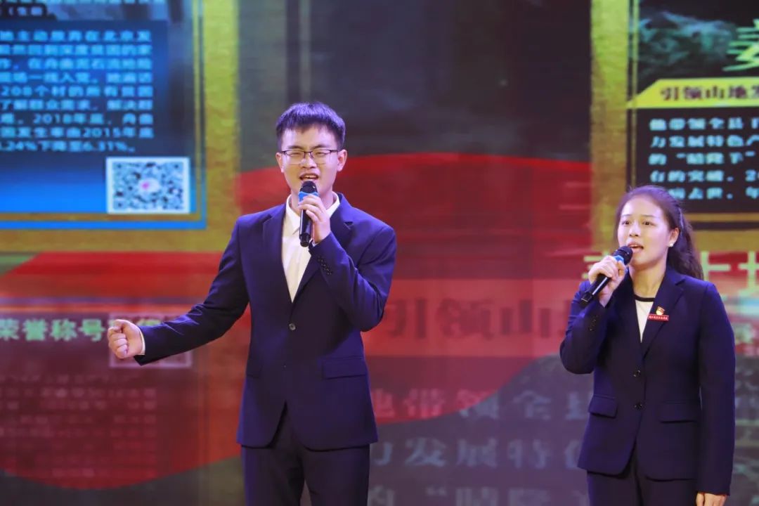 教育系黄智老师与李濡夕老师,以声情并茂的表演,讲述了贫困村韩家山在国家脱贫攻坚政策的帮助下成功脱贫的故事,生动展现了中国共产党人“攻坚克难、不负人民”的脱贫攻坚精神。