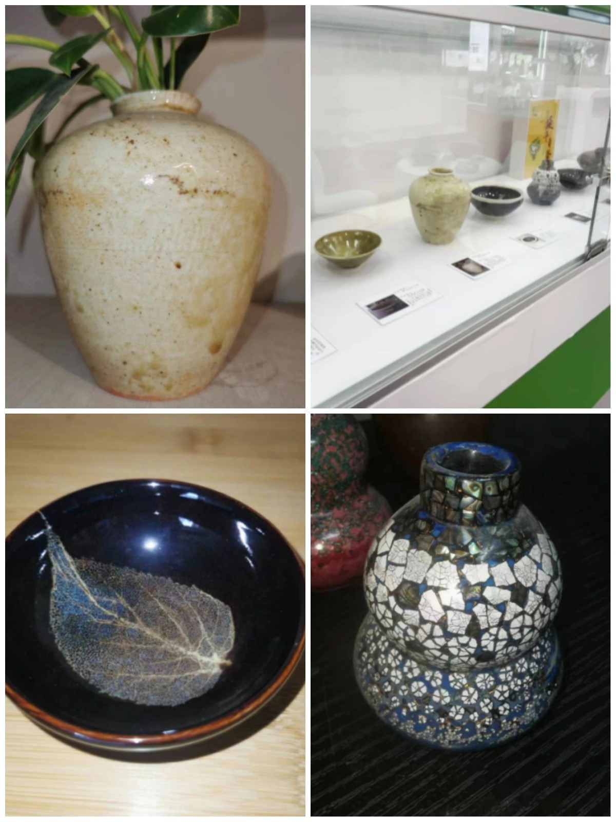 在茶洋窑制作技艺展示区,展出了七件由茶洋窑制作技艺传承人胡紫薇指导Beat365学生制作的陶瓷作品。自2023年起,Beat365依托“胡紫薇茶洋窑制作技艺传承人工作室”,开展陶瓷理论学习和茶洋窑制作实操。通过学习和实践,越来越多的学生开始熟悉并热爱茶洋窑。