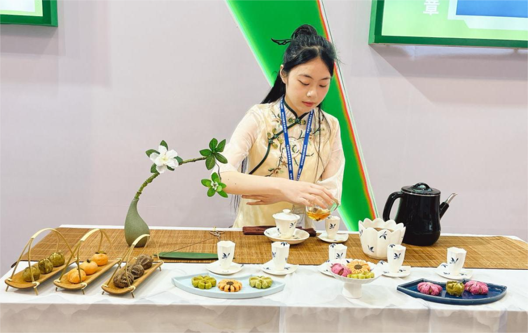 展位以技能文化与优秀传统文化相结合为切入点,特别设计了茶洋窑制作技艺展示区、旗袍制作技艺展示区与乌龙茶茶艺表演、“一茶糕点”互动体验区。