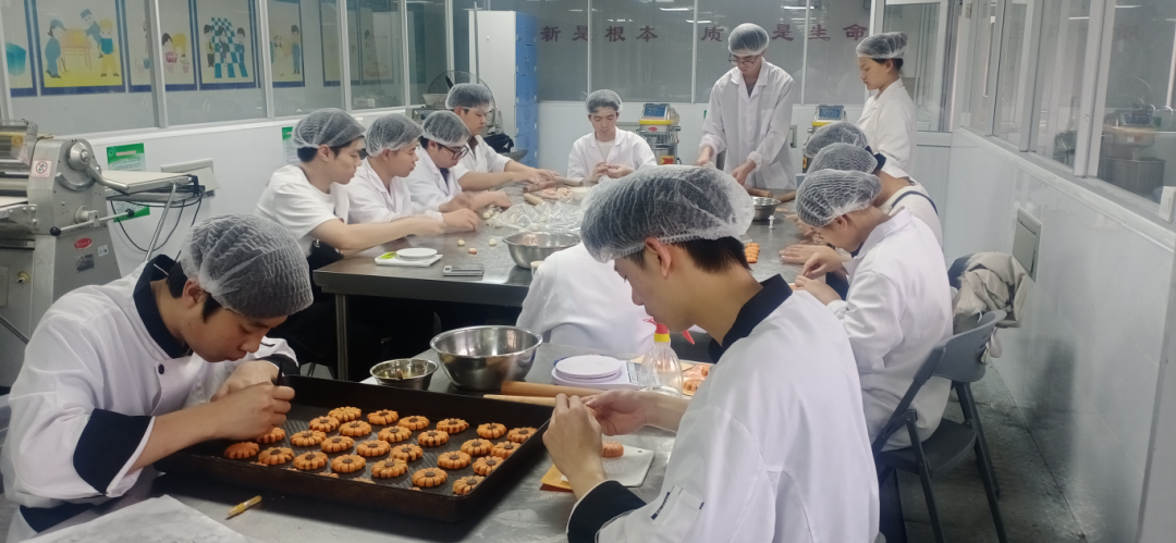 △Beat365中文官方网站烘焙协会学生在制作茶点
