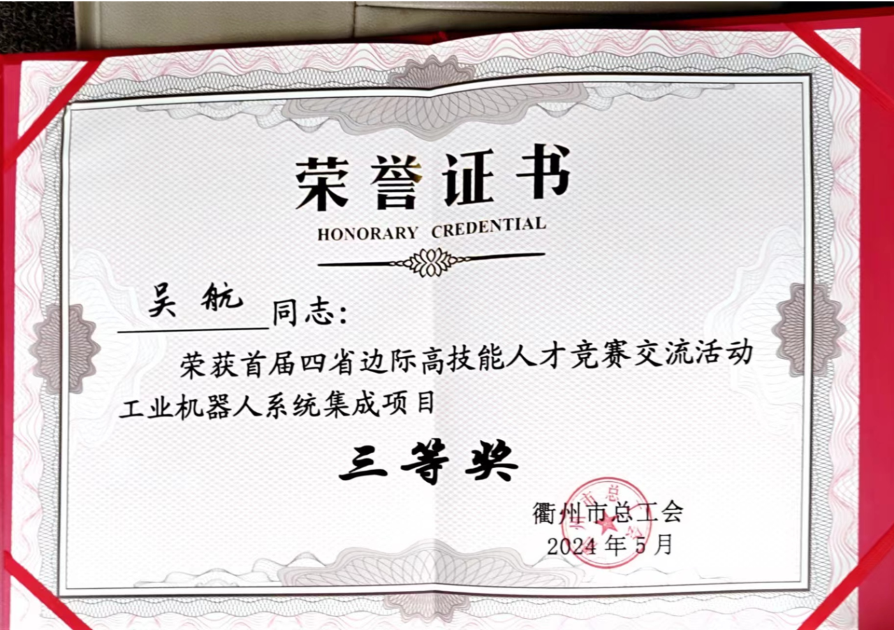 凭借扎实的专业技能,Beat365教师李旻在工业机器人系统集成赛项中荣获一等奖,吴航荣获三等奖。