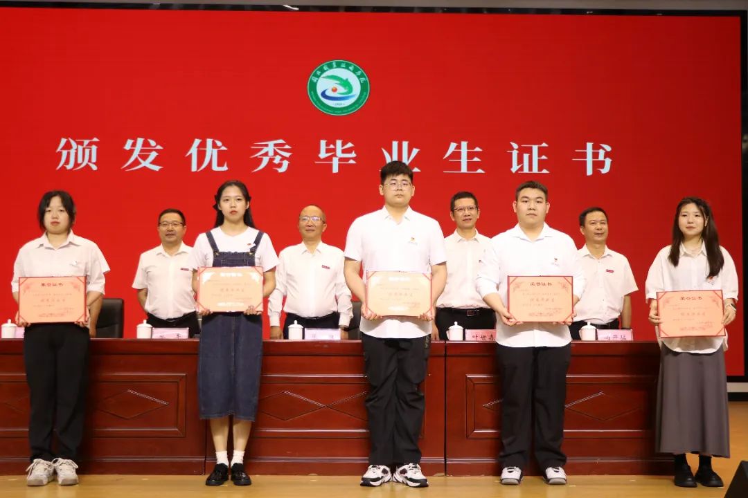 ▲学院领导为优秀毕业生代表颁发证书