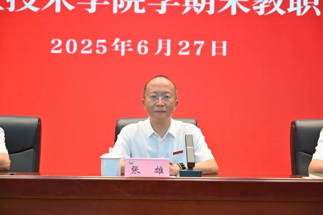 学院党委副书记、院长叶世森总结了2025年上半年学院各项工作开展情况,同时,安排部署暑期各项工作。他表示,2025年以来,学院各项事业取得了显著进展,这些成绩的取得是全体教职工共同努力的成果。同时,我们也要清醒地认识到当前工作存在的不足和努力的方向。他强调,今年暑假专项工作任务多,希望各处室、系部要加强统筹协调,确保相关工作任务按时落实落地,全体教职工要利用假期进一步提升自我,为新学期工作充电赋能。