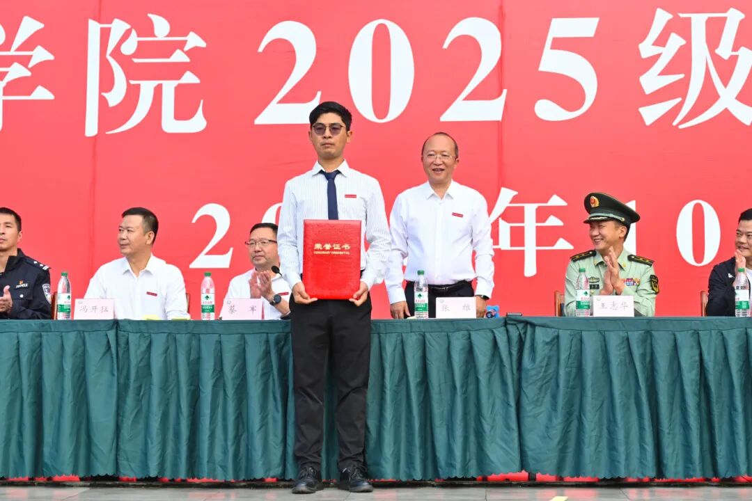 张雄代表学院向顺利完成军训任务的全体新同学,以及获得表彰的先进集体和优秀个人表示热烈的祝贺。向承担本次军训任务的武警福建总队南平支队的全体教官,向全程陪伴、全力保障的辅导员老师及所有工作人员表示诚挚的问候和衷心的感谢。他表示,军训的哨声即将远去,但奋斗的号角刚刚吹响,同学们要铸牢家国情怀,以坚定信念锚定人生航向;要锤炼过硬本领,以勤学善思夯实成长根基;凝聚团结之力,以协同共进成就集体荣光;永葆奋斗之姿,以攻坚克难书写青春华章。希望2025级同学们珍惜韶华、不负青春,把军训中锤炼的好思想、好品质、好习惯、好作风,转化为刻苦学习、苦练技能的强大动力,在未来三年学习生涯中以青春之我、奋斗之我练就过硬技能,涵养高尚品格,努力成长为有理想、敢担当、能吃苦、肯奋斗的新时代好青年,在中国式现代化建设的实践中挺膺担当。