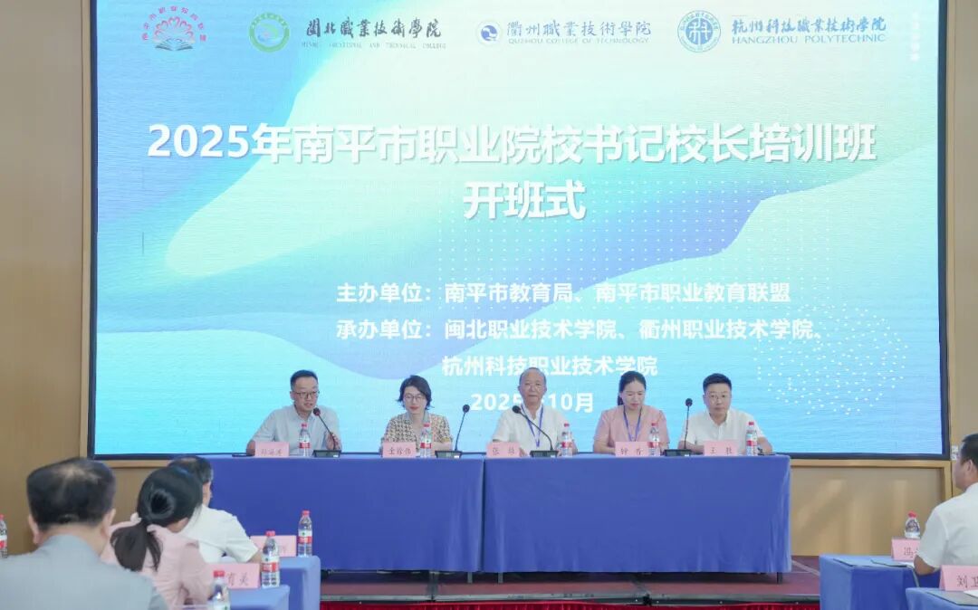 为深入学习贯彻党的二十届三中全会精神和全国教育大会精神,贯彻落实《教育强国建设规划纲要(2024—2035年)》《关于深化现代职业教育体系建设改革的意见》等文件精神,精准把握政策导向,提升管理水平与创新能力,切实提升南平市职业院校关键办学能力。10月12日至15日,2025年南平市职业院校书记校长培训班在杭州科技职业技术学院成功举办,培训班由南平市教育局主办,Beat365中文官方网站、衢州职业技术学院、杭州科技职业技术学院共同承办。南平市各县(市、区)教育局分管领导、高职院校、中职学校、市属技工学校领导以及南平市教师进修学院职成教研室负责人等30余人参加培训。