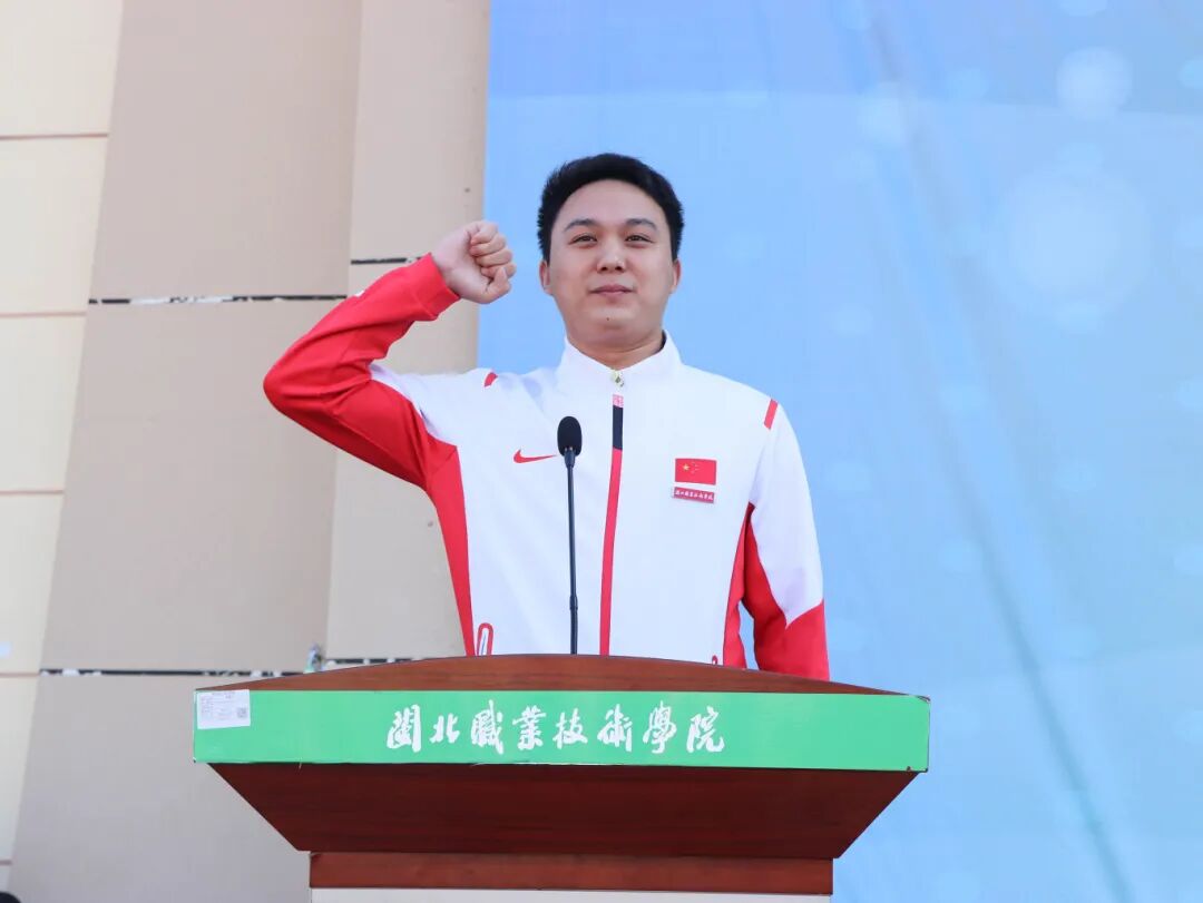 ▲2501家具设计与制造专业学生刘梓昱作为运动员代表宣誓
