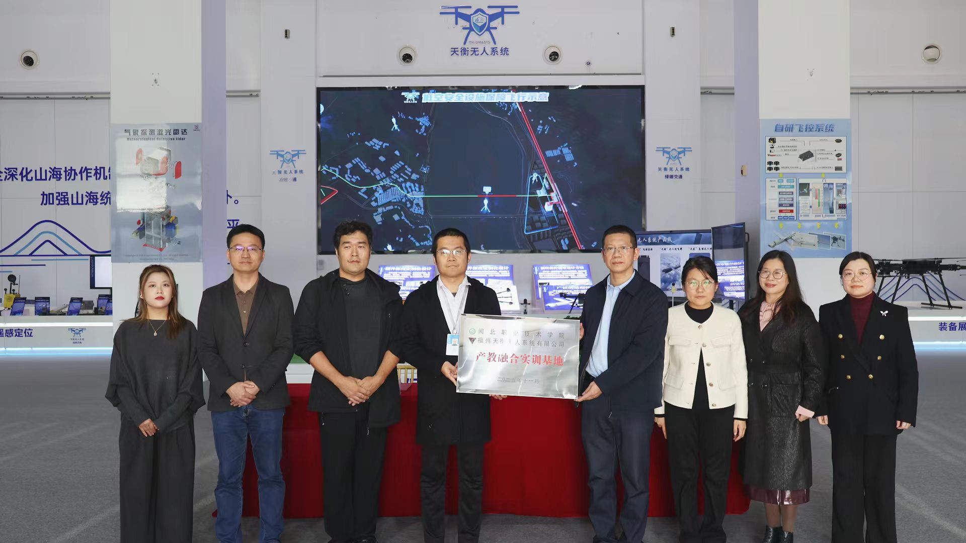 12月1日,学院党委副书记、院长叶世森带领学院智能制造专业群教师一行赴福州天衡无人系统有限公司参观调研,实地考察了气象探测激光雷达、通讯遥感定位装备及天鸿系列无人机等产品,并举行“产教融合实训基地”授牌仪式,天衡总设计师蔡国玮、总经理王斌等参加授牌仪式。