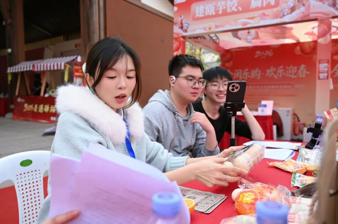 活动期间,学院师生团队充分发挥专业优势,围绕闽北特色农产品、文创产品、新春年货等品类开展多场直播推介。以生动鲜活的语言、直观有趣的展示,有效助力本地优质年货“触网出圈”、走进千家万户,切实推动乡村产业发展与农民增收。