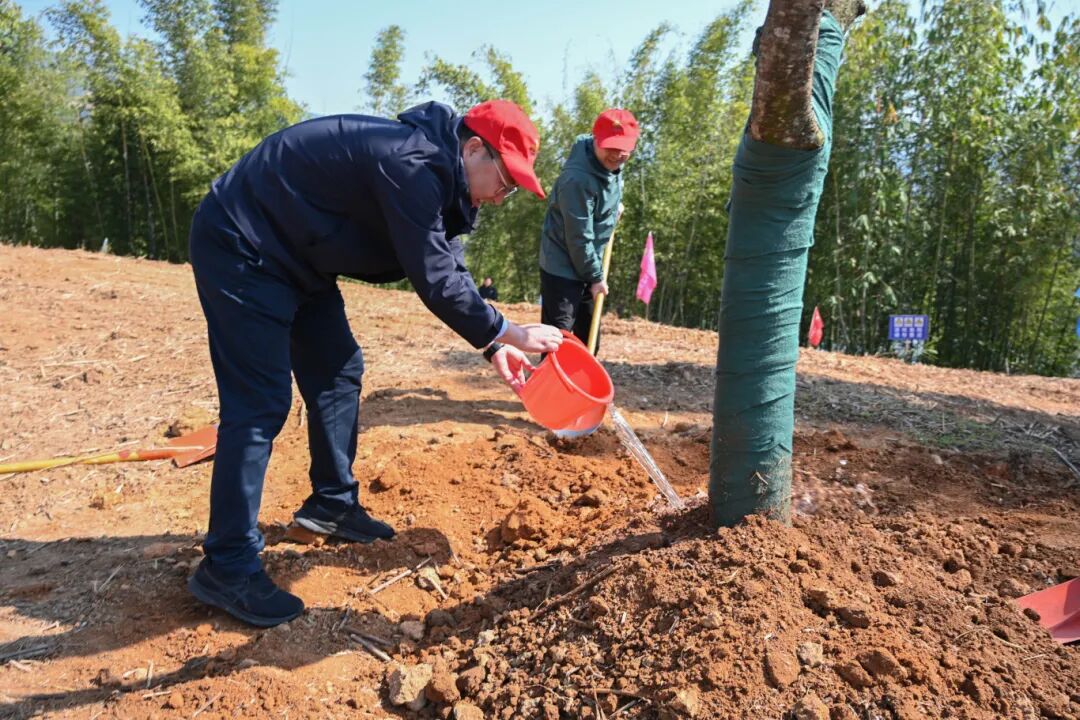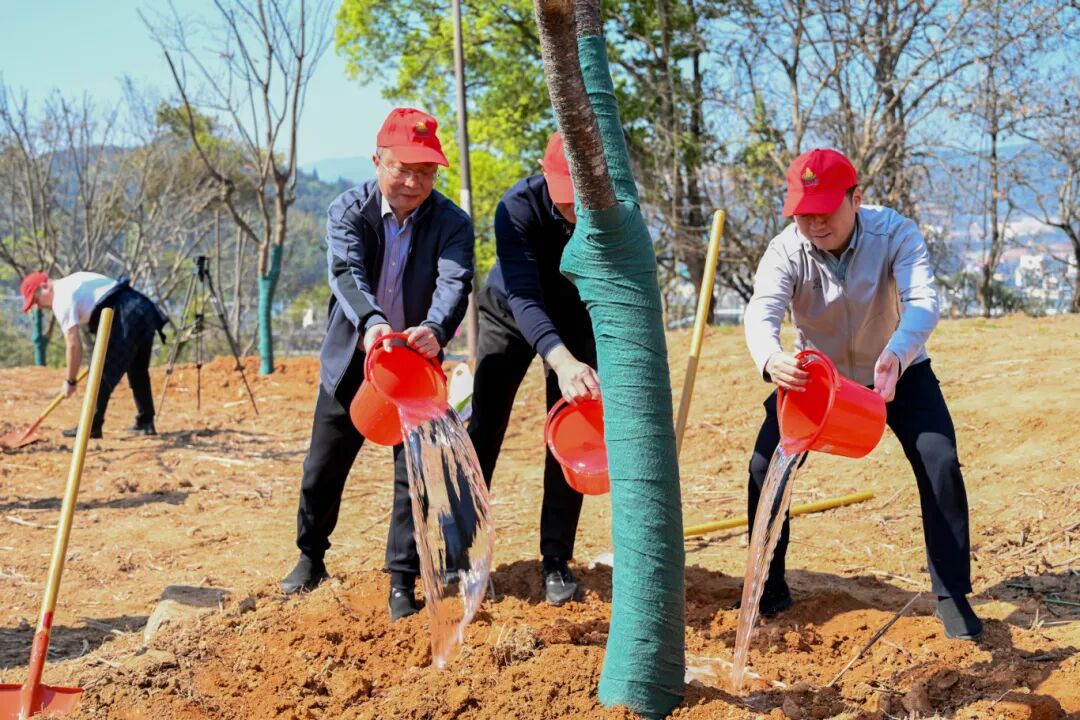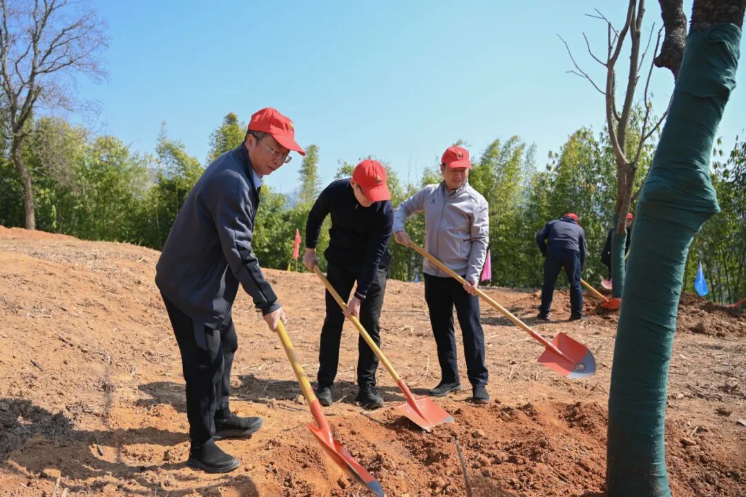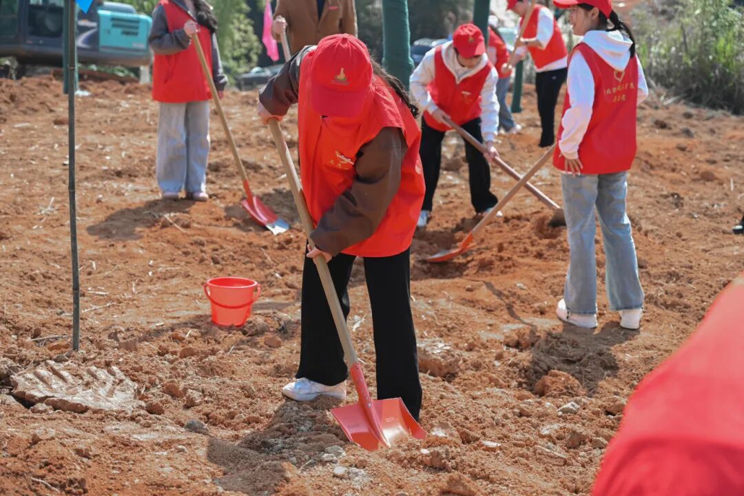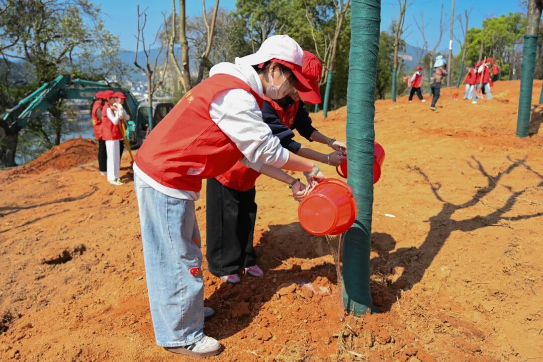 活动现场春意盎然、干劲十足。院领导与青年志愿者们分工协作、默契配合,挥锹铲土、扶苗填坑、踩实浇水,每一道工序都认真细致、规范有序。大家共同栽下樱花等特色景观苗木,以党建红、志愿红引领生态绿,让一株株新苗在江畔扎根挺立,为闽江之畔增添勃勃生机。