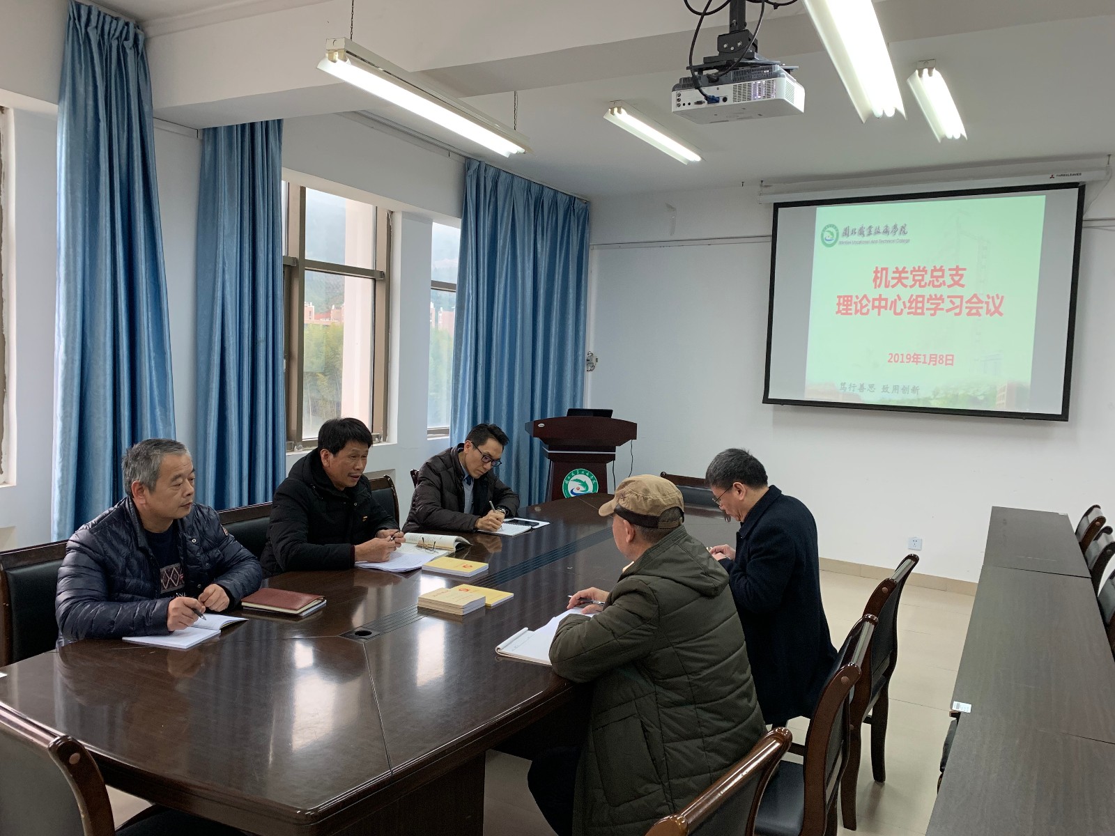 2019年1月8日下午,学院机关党总支在行政楼五楼会议室召开理论中心组学习会,专题学习《习近平新时代中国特色社会主义思想三十讲》,机关党总支书记叶常明同志作学习《习近平新时代中国特色社会主义思想三十讲》第九讲“将全面深化改革进行到底”主题发言,他的发言题目是《在实际工作中如何发扬钉钉子精神》。与会党总支委员郑定华、刘林、王金土、吴兴旺四位委员分别结合各自岗位,就如何深刻领会和灵活运用钉钉子精神,将工作落到实处、取得成效作学习交流发言。