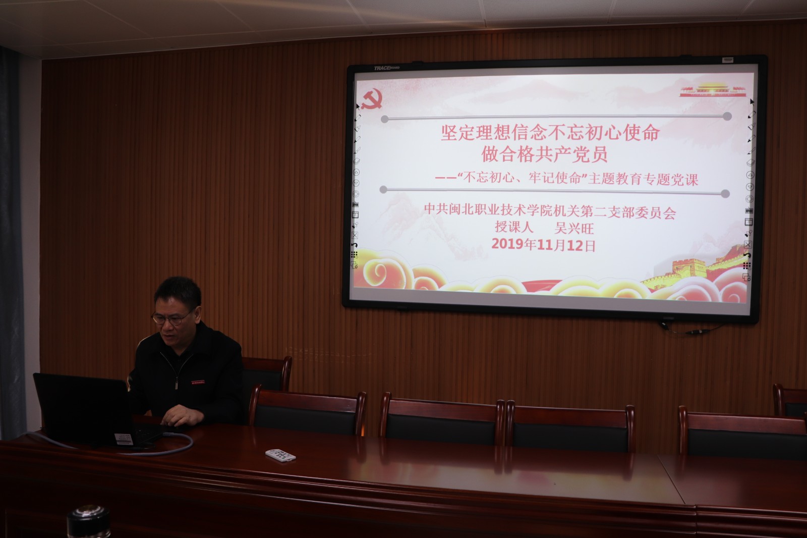 2019年11月12日下午,学院机关党总支召开全体党员大会,第一、第二支部书记为支部党员作“不忘初心、牢记使命”主题教育党课辅导。