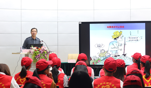 仪式结束后,地震领域专业人员还向志愿者们进行了一场精彩的科普知识讲座,并与同学们进行了交流。