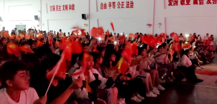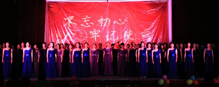 最后,晚会在师生大合唱《歌唱祖国》声中圆满结束。