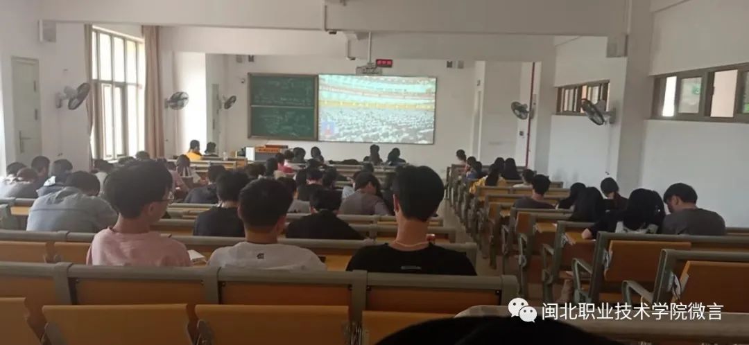 全体教职工及部分学生代表在学院综合报告厅集中收看开幕会直播