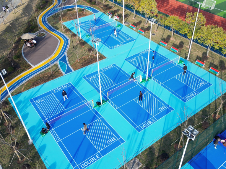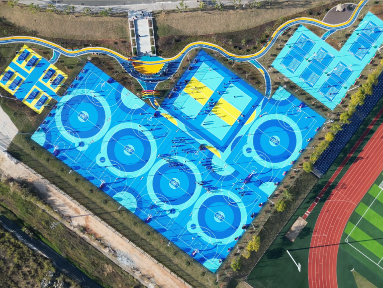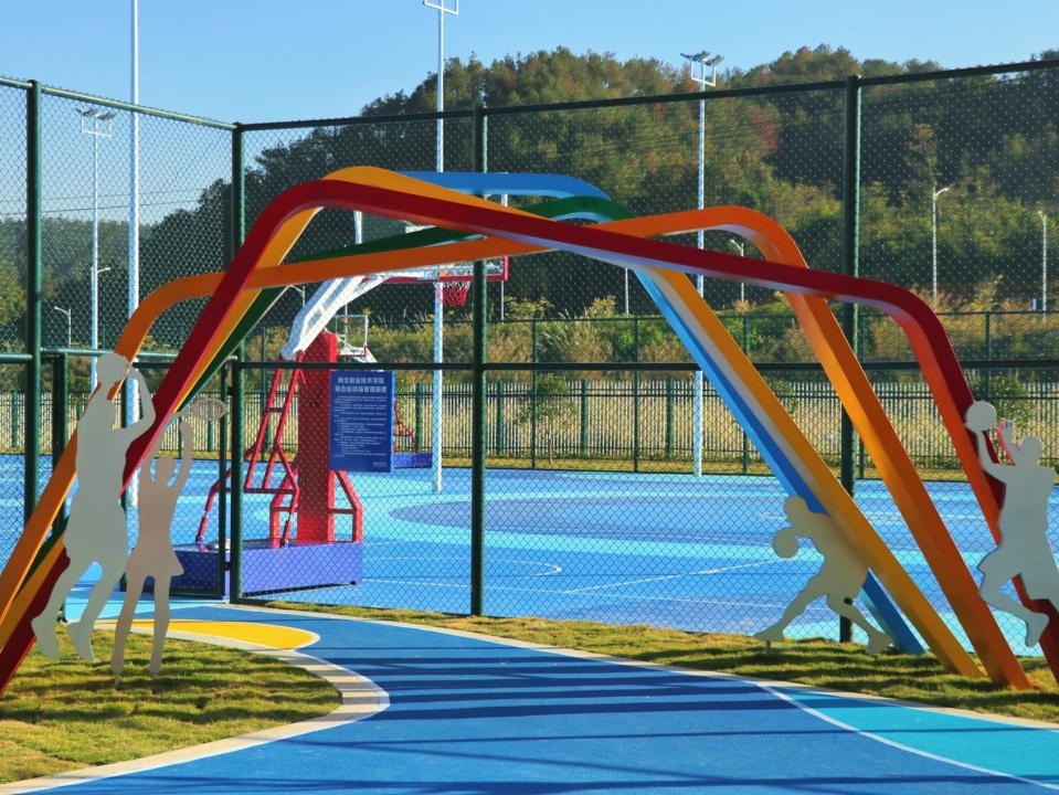 综合运动场:建设面积9854 平方米,包含5个篮球场、4个羽毛球场、2个排球场和8个乒乓球场,设有休闲步道及配套景观。项目建成后,校园内运动场地及设施条件得到了巨大改善,进一步保障了体育教学的开展,满足了广大师生的体育锻炼需求。