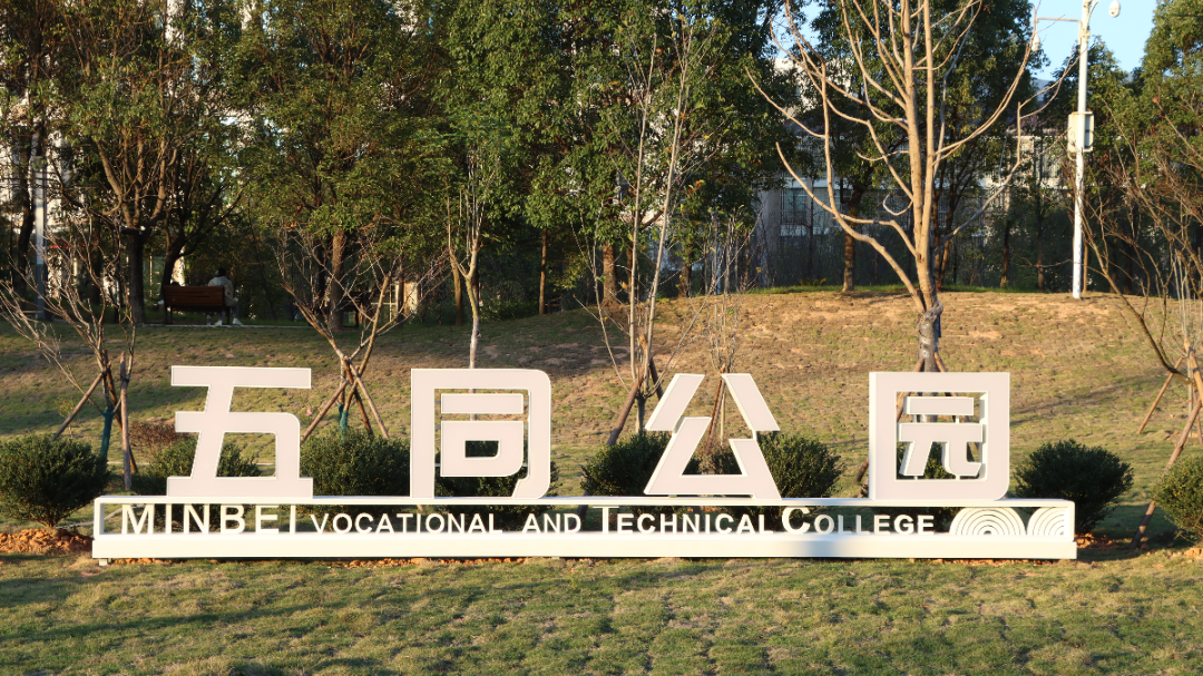 五同公园:建设面积8400平方米,整体设计理念围绕“旗帜同向、文化同根、治理同心、技能同行、环境同和”的“同”文化品牌,充分应用“五同”元素,公园的平面造型由五个大小不一的同心圆组成。园内有七块异形石,其中五块石头分别雕刻了篆、隶、草、行、楷五种字体的“同”字,另外两块石头,一块刻有“以同治校、以同兴校”八个字,体现“同”文化内涵,另外一块刻有“同行”二字,代表学院全体师生凝聚“同向同行同奋斗”的前进力量。五同公园也作为校内集使用功能、审美功能和教育功能为一体的重要景观,配套有完善的园林道路、绿化植被、灯光照明系统。