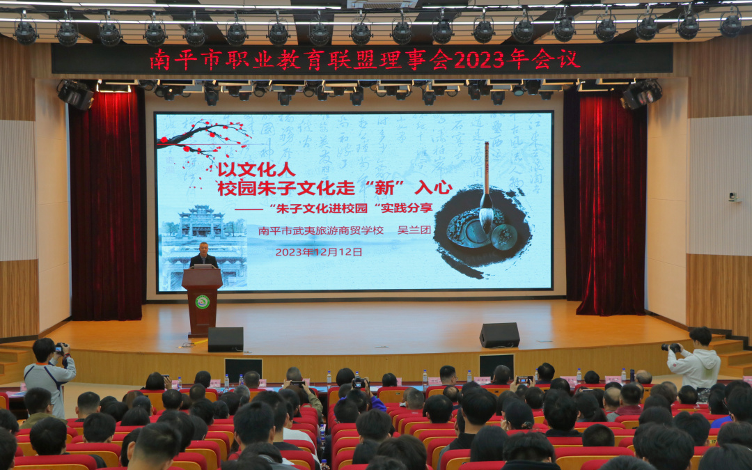 △闽北南平市武夷旅游商贸学校吴兰团校长作题为“以文化人--校园朱子文化走‘新’入心”的经验交流